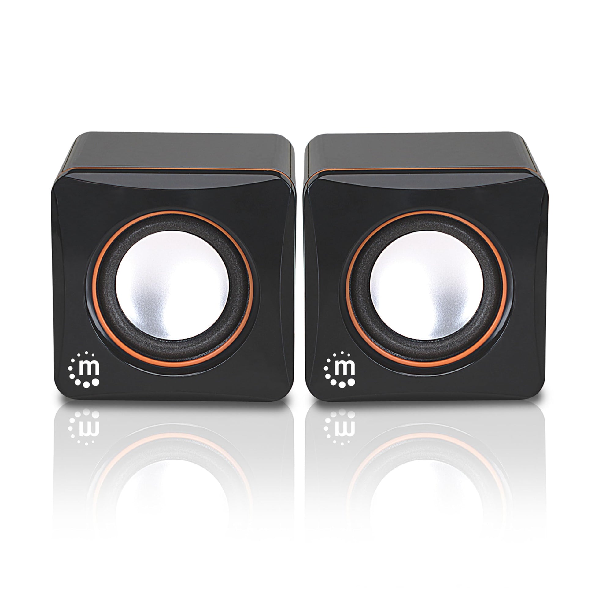 Manhattan USB Powered Stereo Speaker System - Small Size - with Volume Control & 3.5 mm Aux Audio Plug to Connect to Laptop, Notebook, Desktop, Computer - 3 Yr Mfg Warranty - Black Orange, 161435
