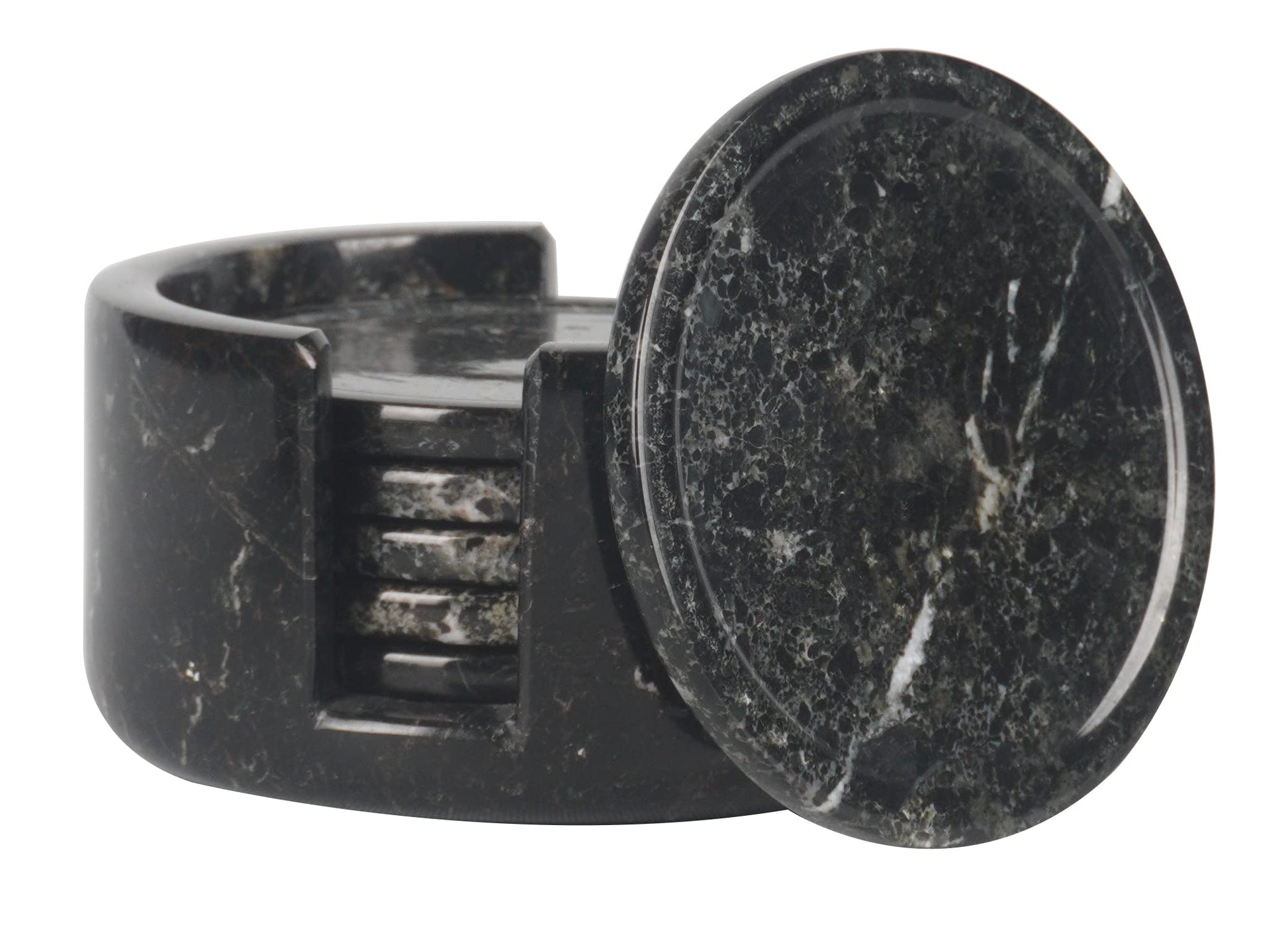 Marble Coasters Set of 6 Black 3.5 Inch Round Coaster for Drinks with Holder, Drink Coaster for Tabletop & Coffee Table Decor, Ideal Home Decor House Warming Gifts