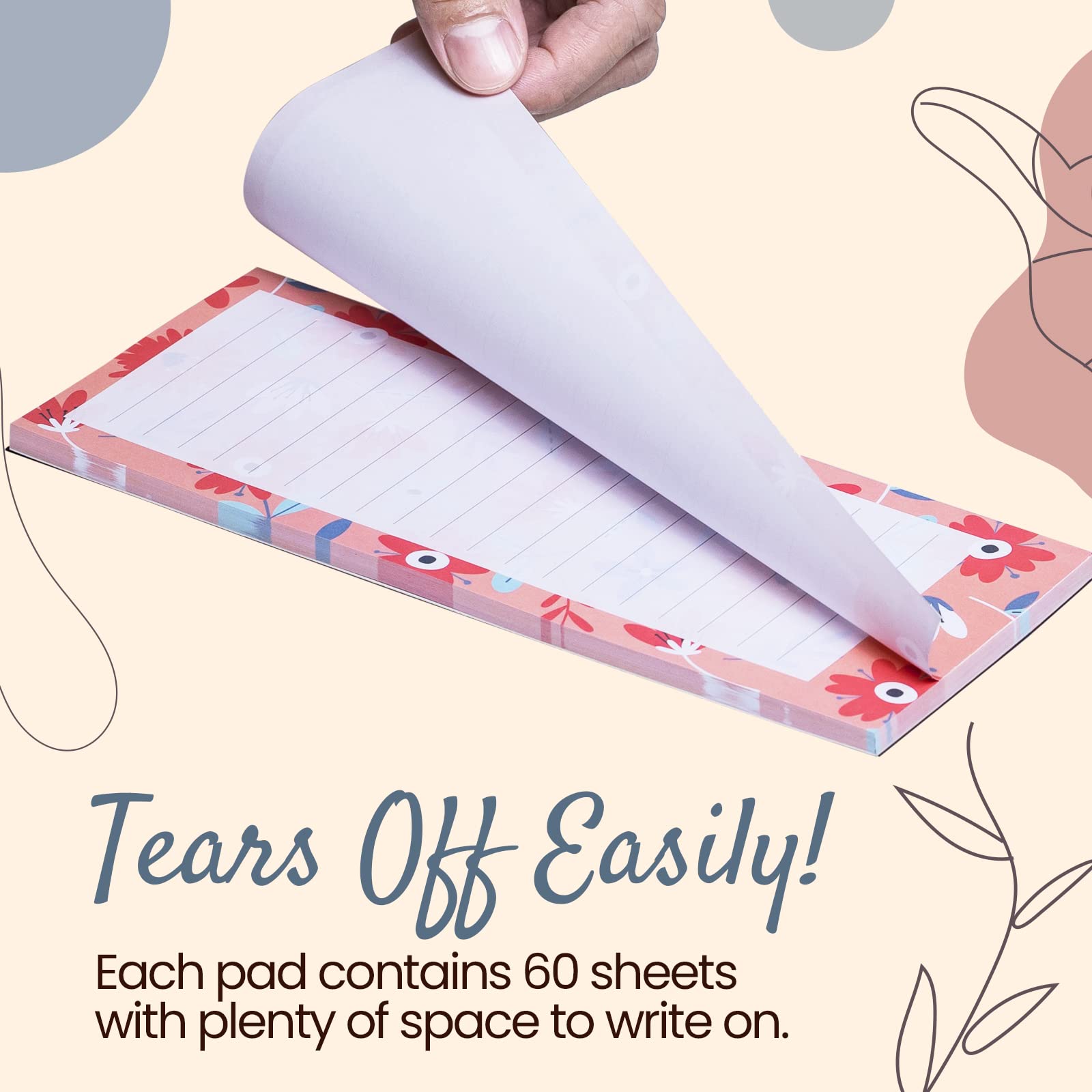 - EASY TO TEAR OFF SHEETS: Each pad contains 60 sheets with plenty of space to write on and simply tears off when completely filled.