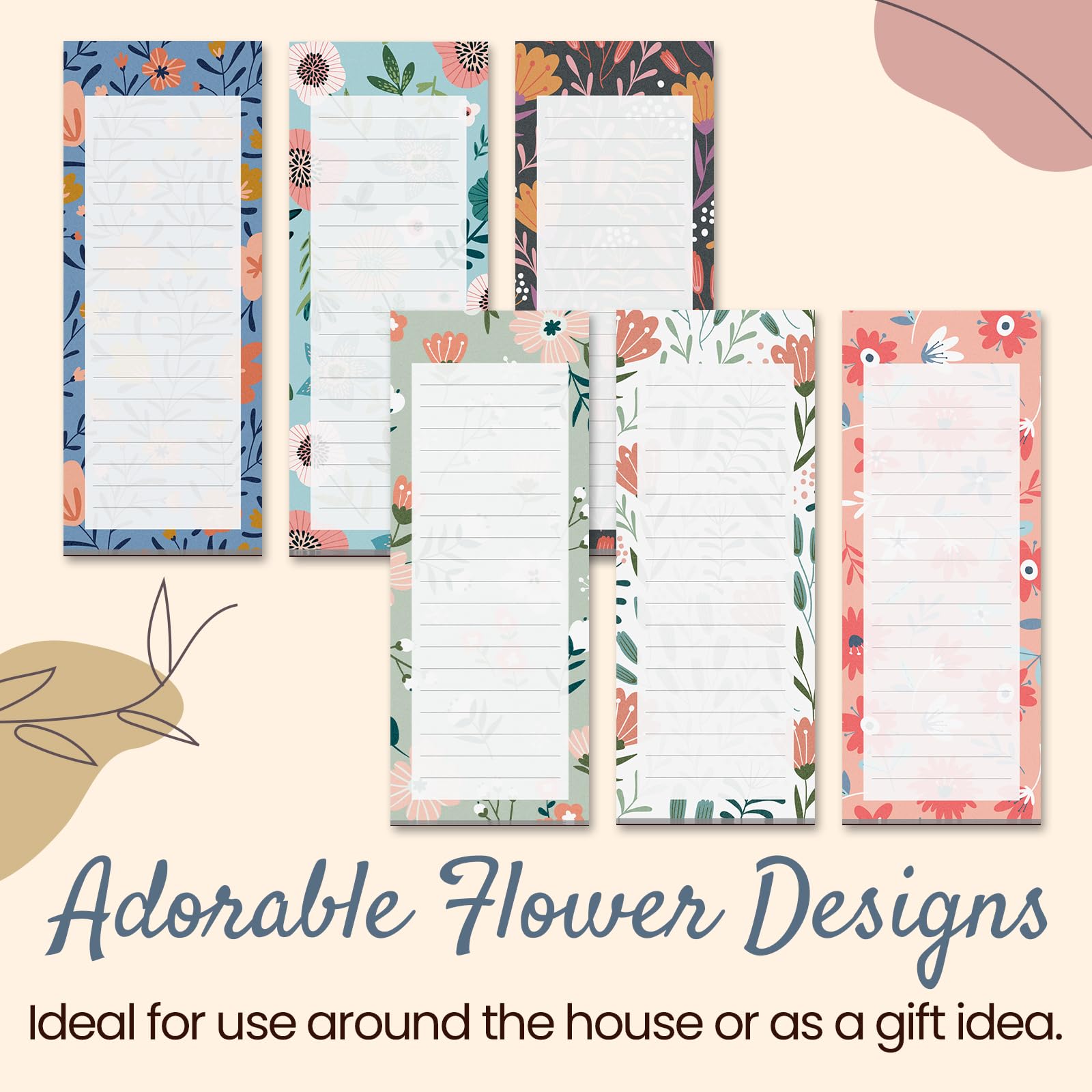 - MAGNETIC NOTEPADS FOR REFRIGERATOR: Set consists of 6 beautifully decorated magnetic notepads to help you get and stay organized.
