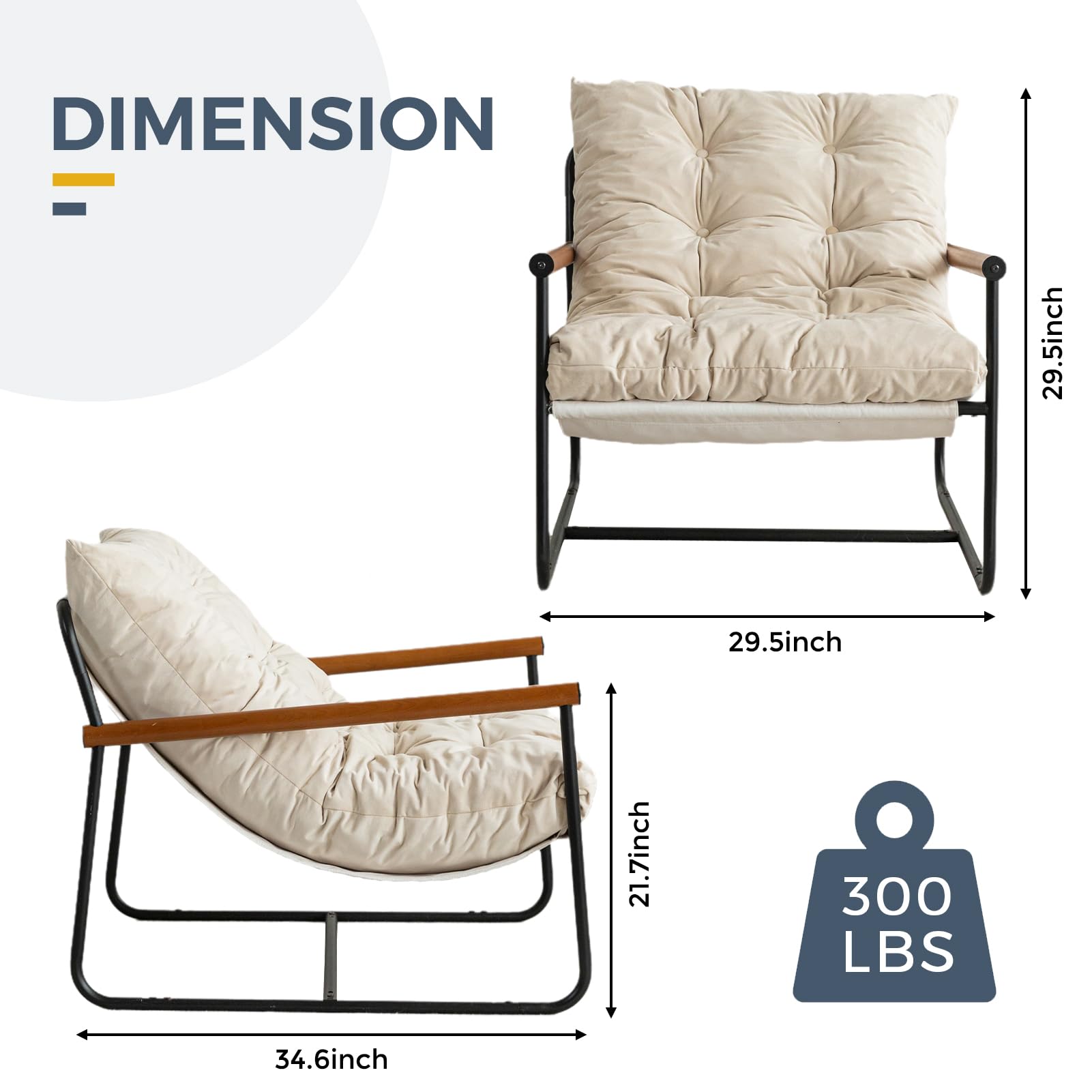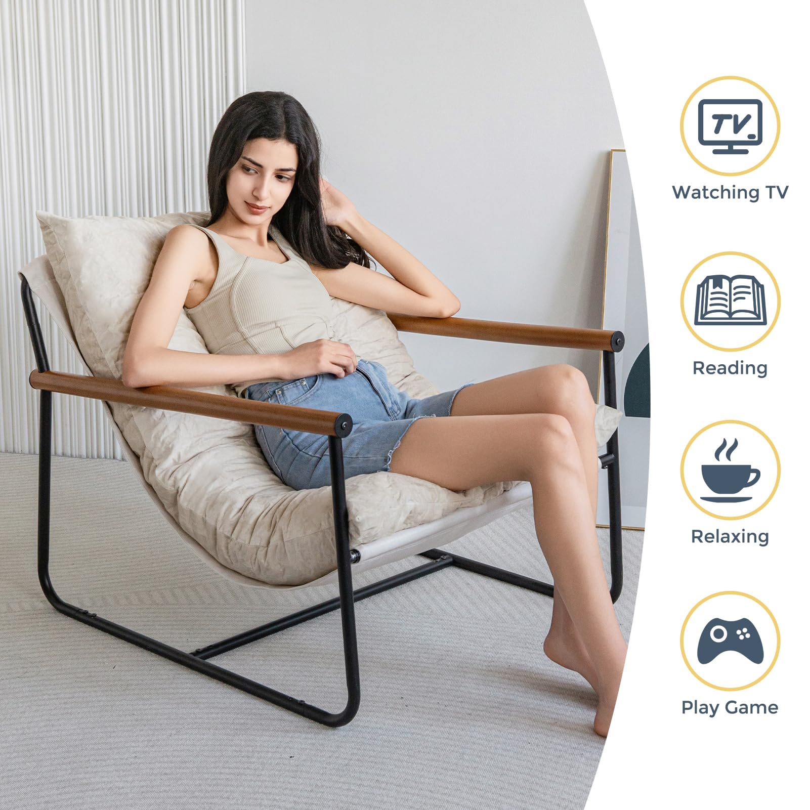MAXYOYO Accent Chair, Velvet Arm Chair Living Room Chair with Metal Frame, Reading Accent Chair, Modern Bedroom Chair, Boucle Armchair with Wooden Arms, Beige