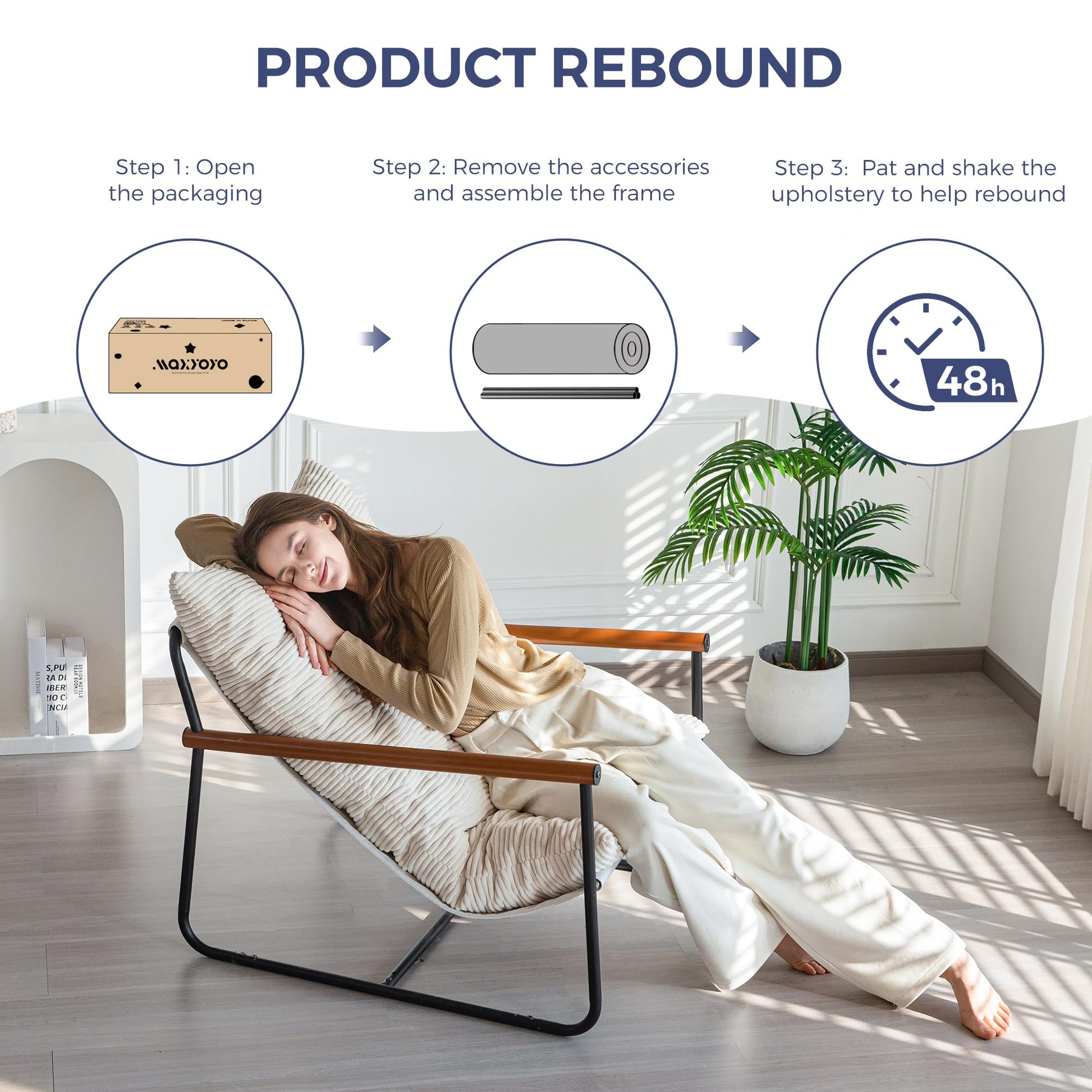 - Easy Assembly: The arm rest made of FSC-Certified wood. Setting up this chair is a breeze, with all necessary tools, instructions, and components included, allowing you to have it assembled and gracing your space within 15-30 minutes. The cushion recovers its elasticity after about 48 hours of breathing for a superior feeling of use