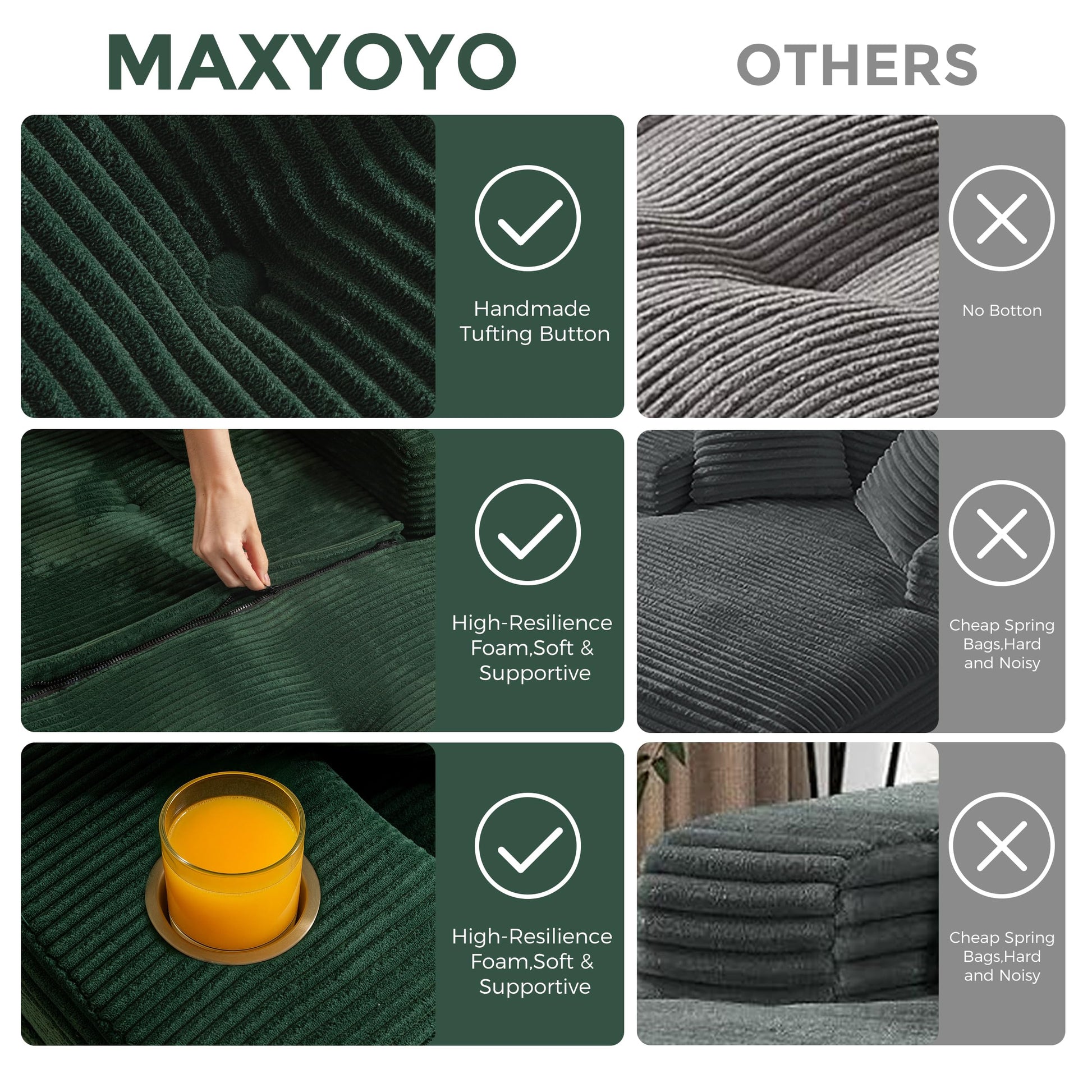 MAXYOYO Oversized Chaise Lounge Sofa, Upholstered Lounge Chair with 3 Pillows Indoor, Tufted Boneless Sofa Couch with Ottoman, Deep Seat Sleeper Chair for Living Room, Bedroom, No Assembly, Green