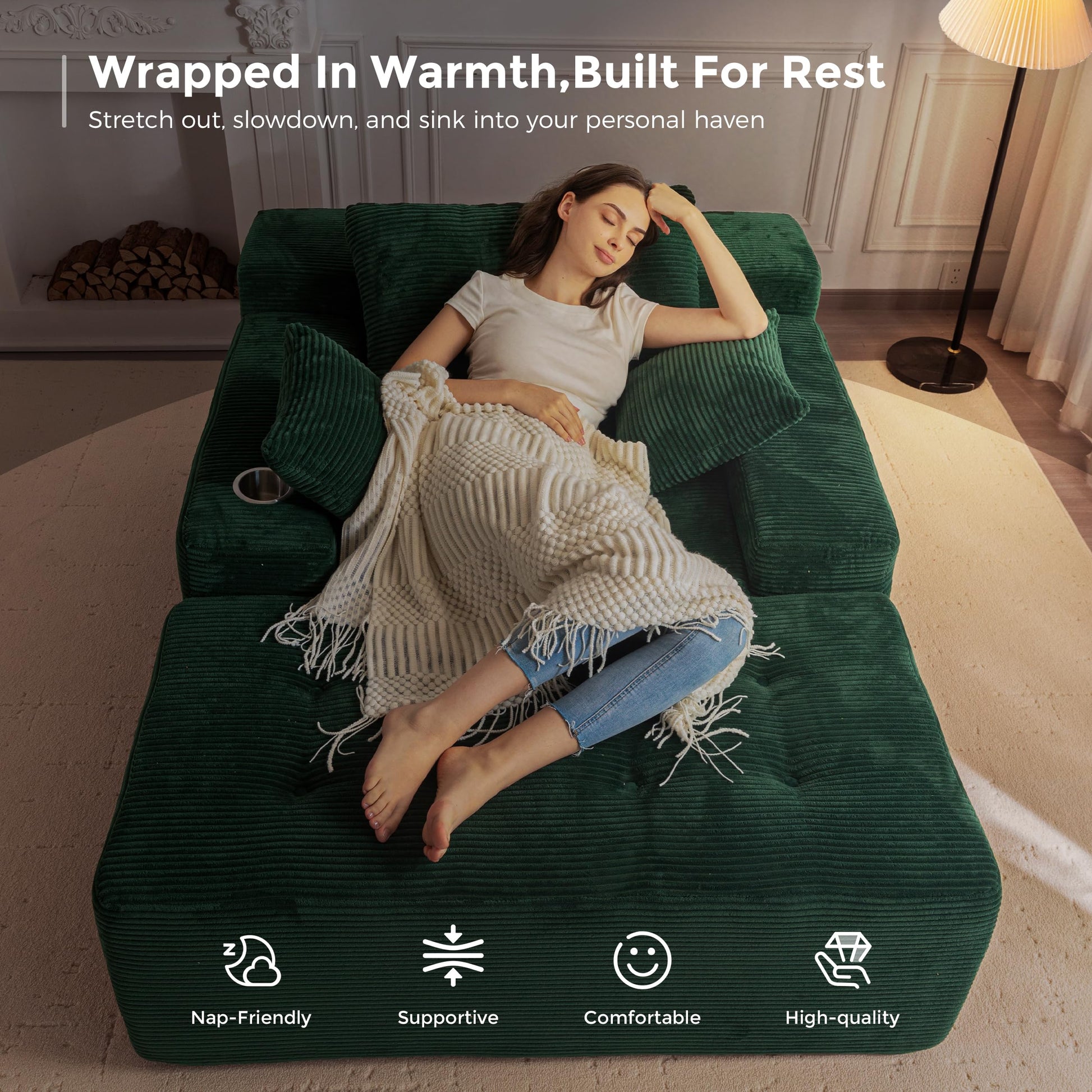 - Wide Armrest with Cup Holder: Designed with wide, ergonomic armrests and integrated cup holder, this chaise lounge sofa couch ensures your favorite drink stays secure and within easy reach—perfect for movie nights, reading sessions, or gaming. Practical side pockets keep remotes, magazines or mobile phones handy and at your fingertips
