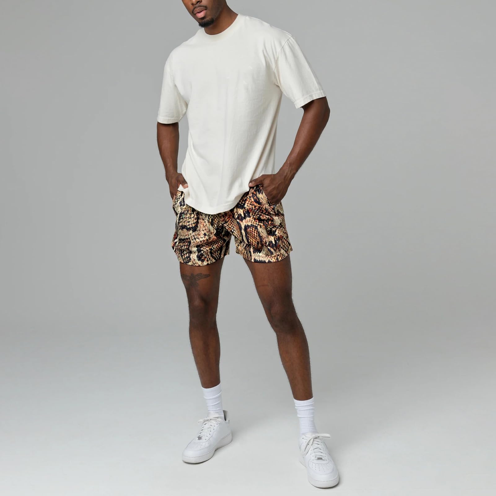 MECH-ENG Men's Graphic Shorts Basketball Athletic Fitness Training Shorts Casual Mesh Lightweight Breathable(Snake Brown Small)