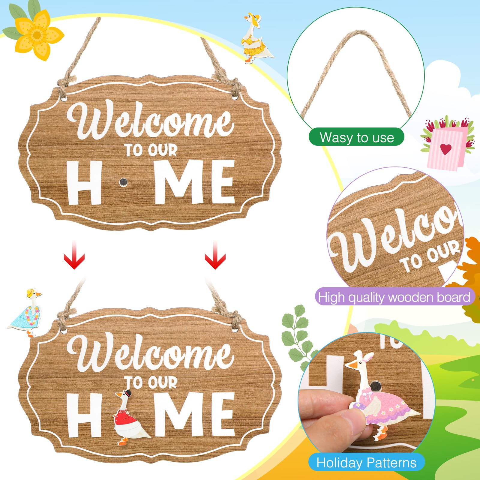 - Package includes: you will receive a Wooden Goose Welcome sign with a lanyard with the word welcome printed on it and 15 different interchangeable goose signs, which can be changed as you like, each piece is magnetic, which can be easily switched, which can decorate your sign more beautiful