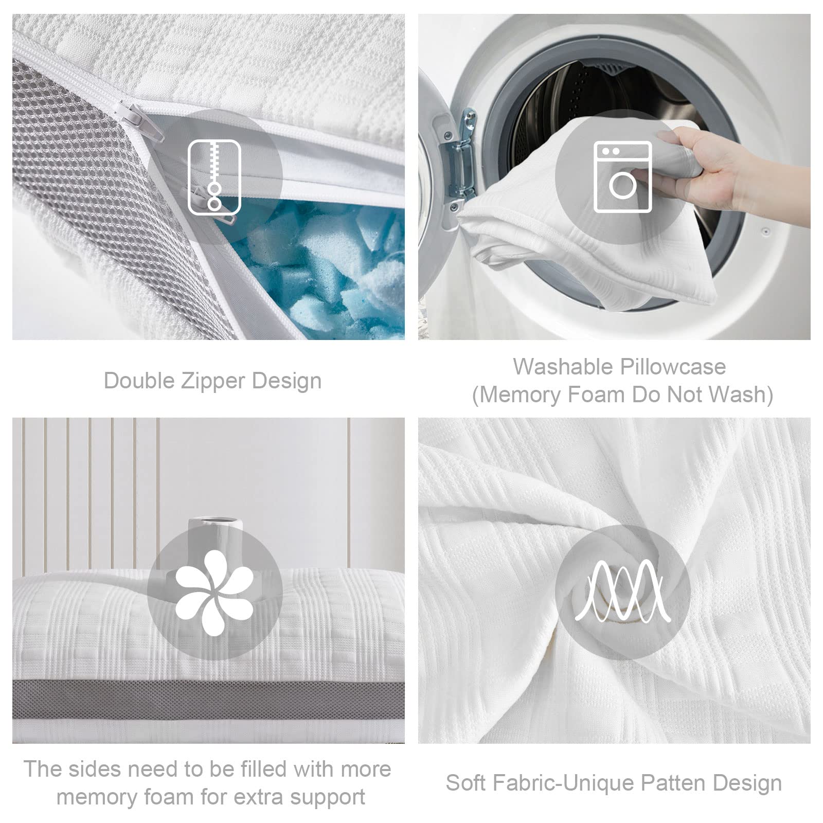 - Simple Options:Bed pillows & positioners are designed for easy maintenance, the pillowcase can be machine washed after disassembly, filling can be easily obtained by patting the fluffiness, which is the choice for long-term use.
