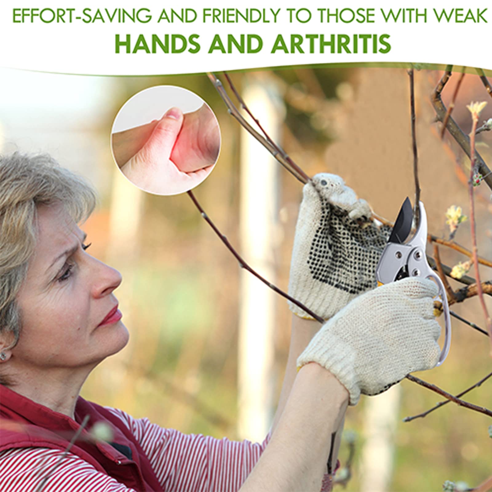MEPEREZ Germany Pruning Shears, Arthritis Weak Hand Snips, Work 3 Times Easier, 1-Inch Cut Capacity Garden Clippers, Ergonomic handle, Rust resistant, high strength steel, Sharp