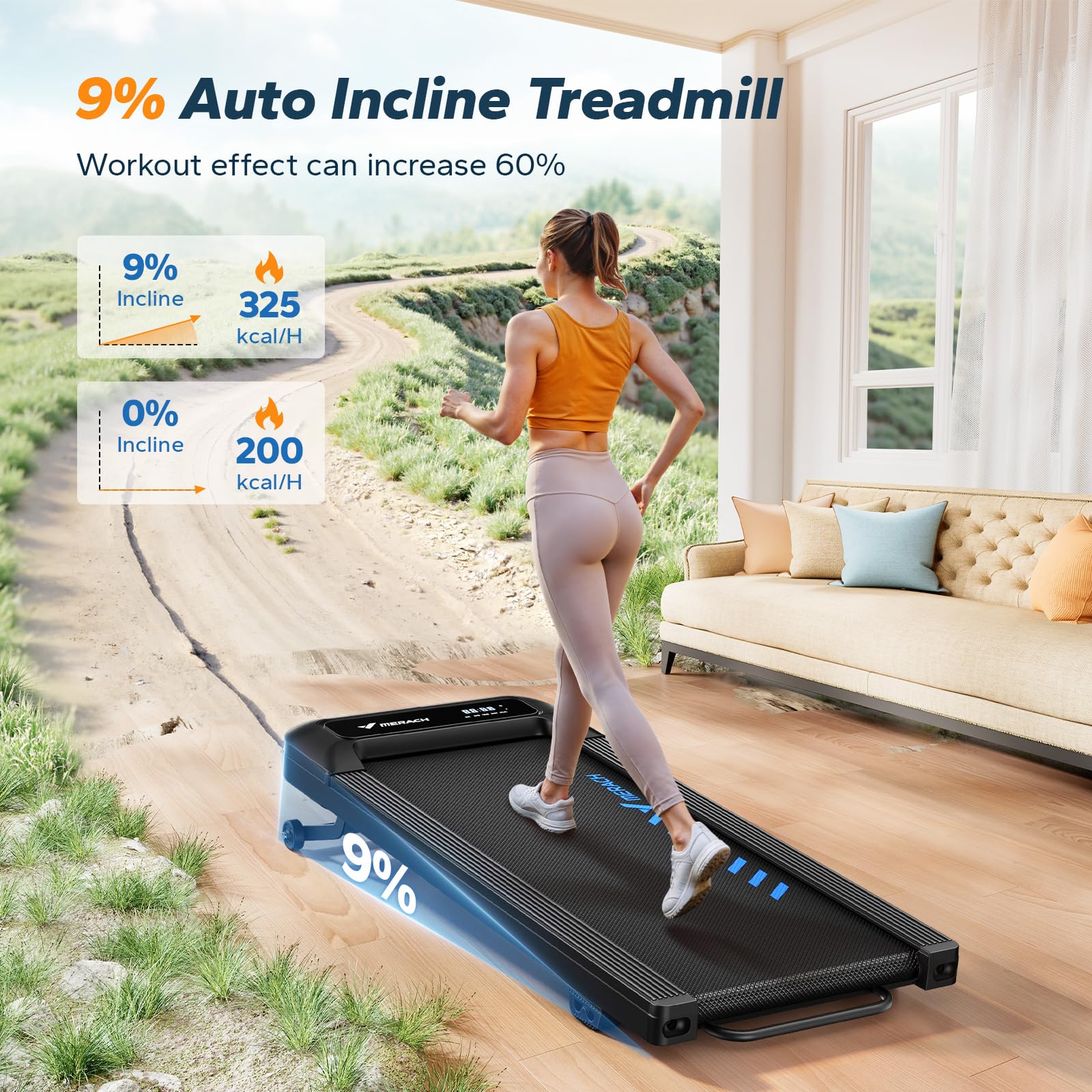 MERACH Walking Pad Treadmill with 9% Auto Incline, 2.5HP Quiet Under Desk Treadmills for Home & Office, Portable Small Treadmill with Magnetic Remote Control, APP, 3 Preset Programs