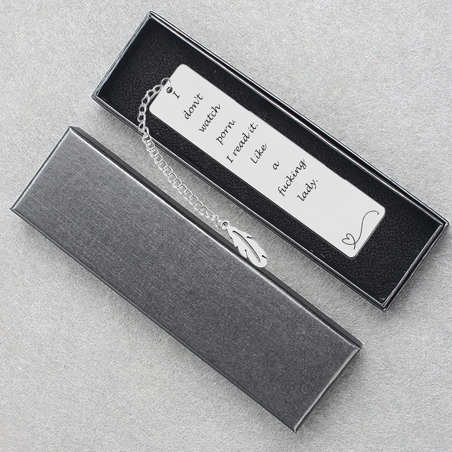 Metal Bookmark Gift,Engraved 'I Don't Watch Porn.I Read it Like a Fking Lady' Stainless Steel Leaf Pendant Book Mark with Exquisite Gift Box for Women Men Friends Teacher Classmate Book Lovers
