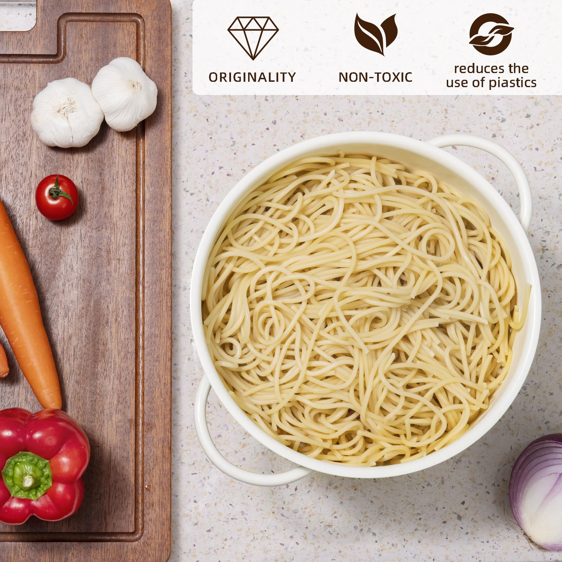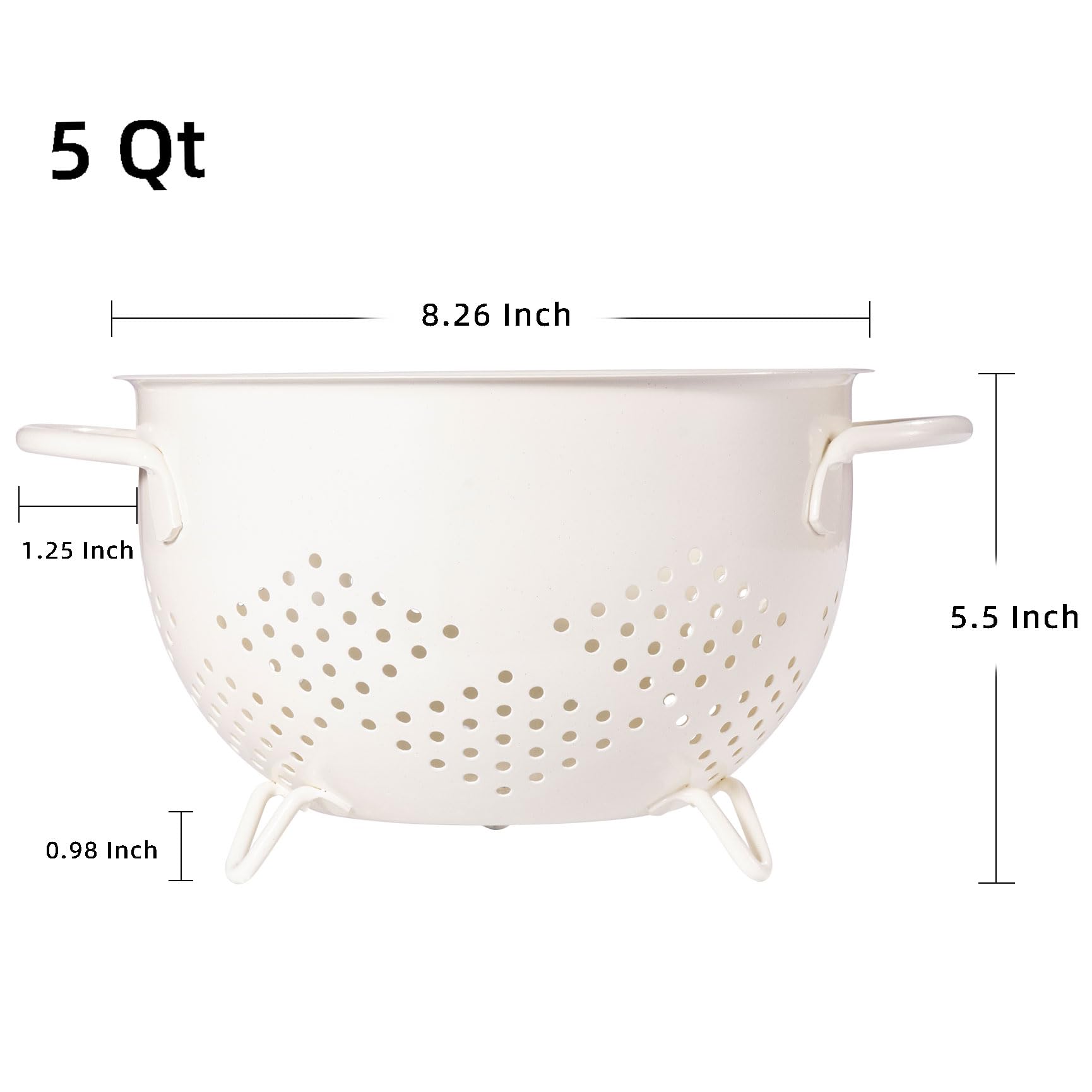 Metal Colander 5 Quart Powder Coated Self-draining Metal Strainer with Base,Kitchen Pasta Fruit Vegetable Basket with Double Handles (Cream)