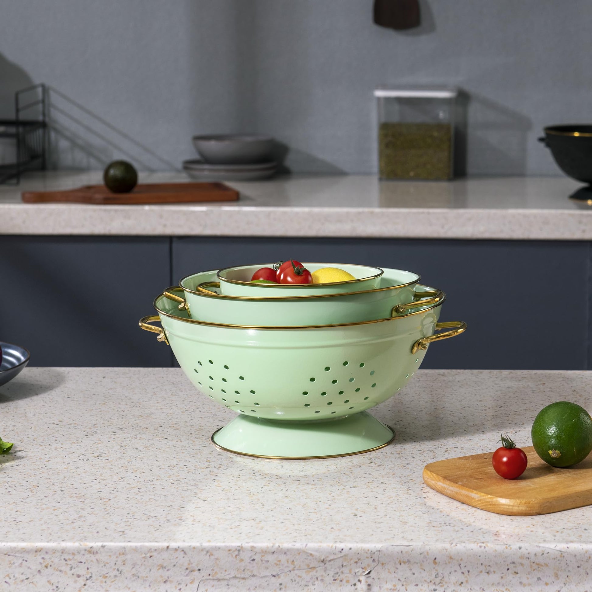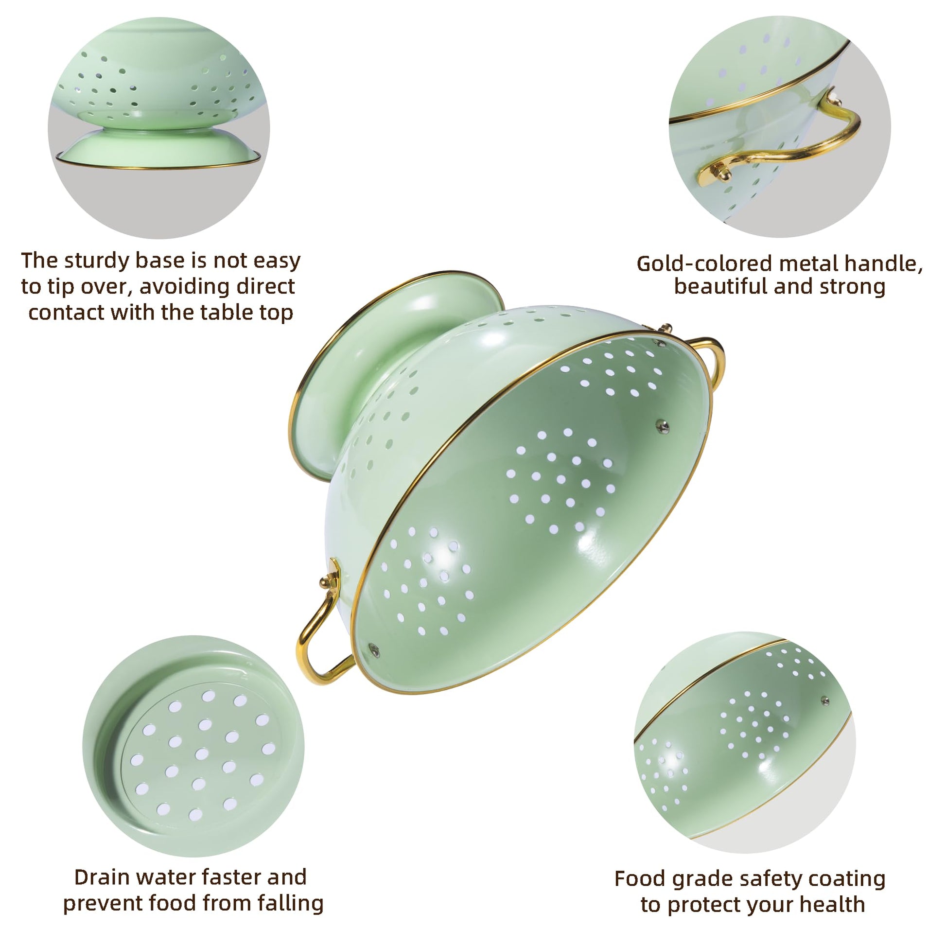 - Metal Colander SetStrainer Basket with Handles Solid Base Powder Coated Kitchen Essential Strainer perfect for Spaghetti, Pasta, Berry, Vegetable, Fruit,
