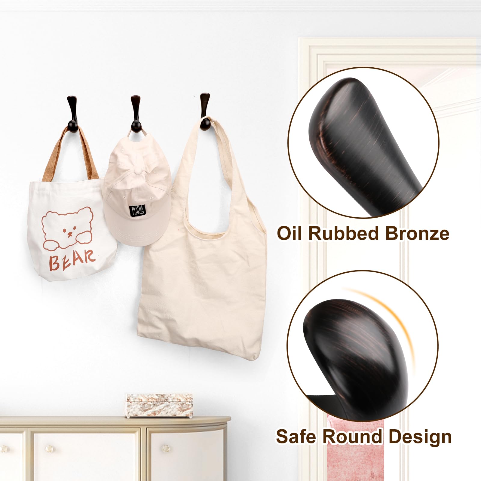 - 【Heavy Duty Material】: Differ from normal bath hooks which is hollow and light-weighted, these oil rubbed bronze towel hooks are made of high-grade zinc alloy, ensuring a more heavy duty and solid quality. The bathroom hooks for wall can withstand rust and corrosion, ideal for damp bathroom or kitchen