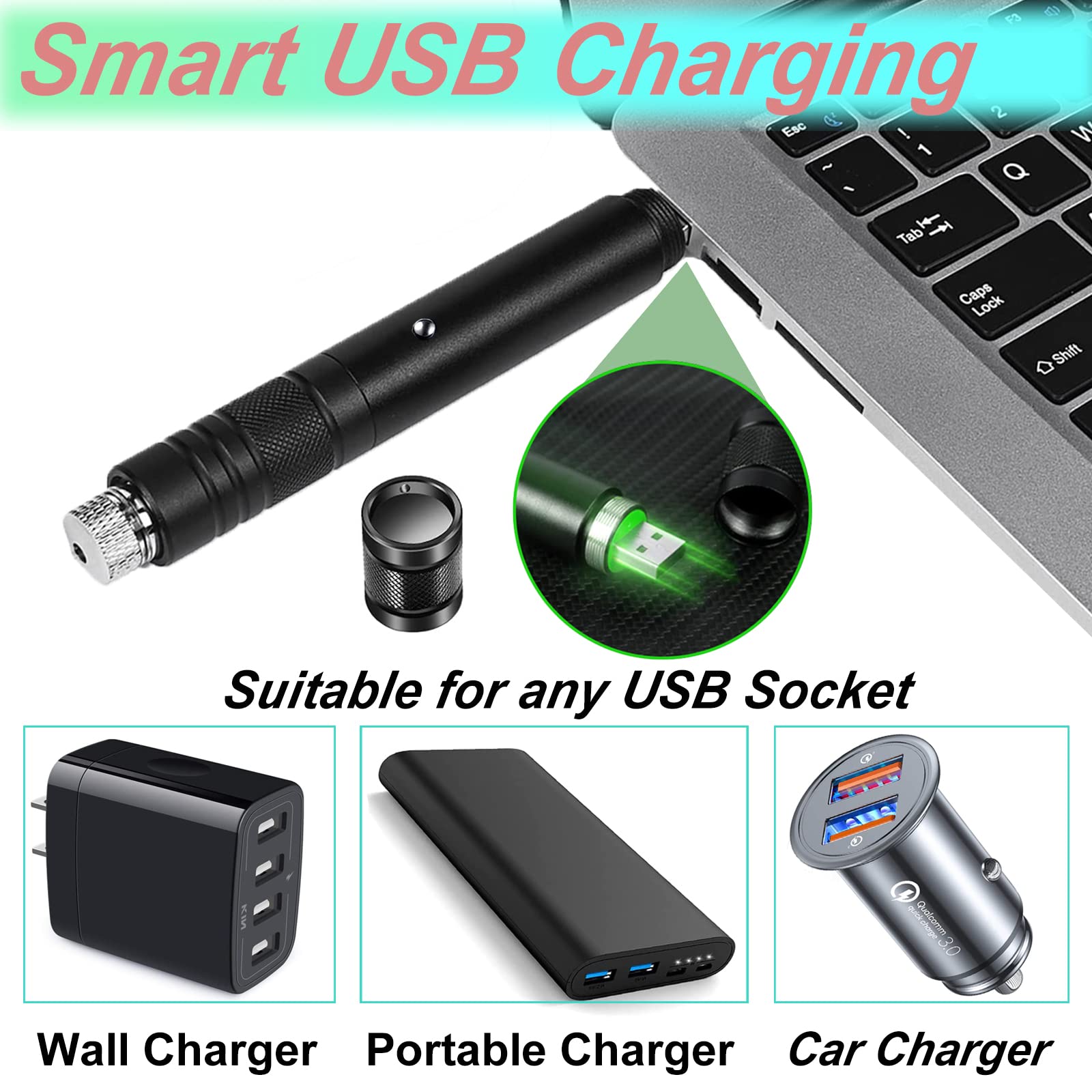 - đăUSB Rechargeable Laser Pointeră: This high power laser pointer can be charge through the built-in USB port, Just unscrew the back cover of the laser pointer and plug into usb device! No need to buy batteries and USB cable