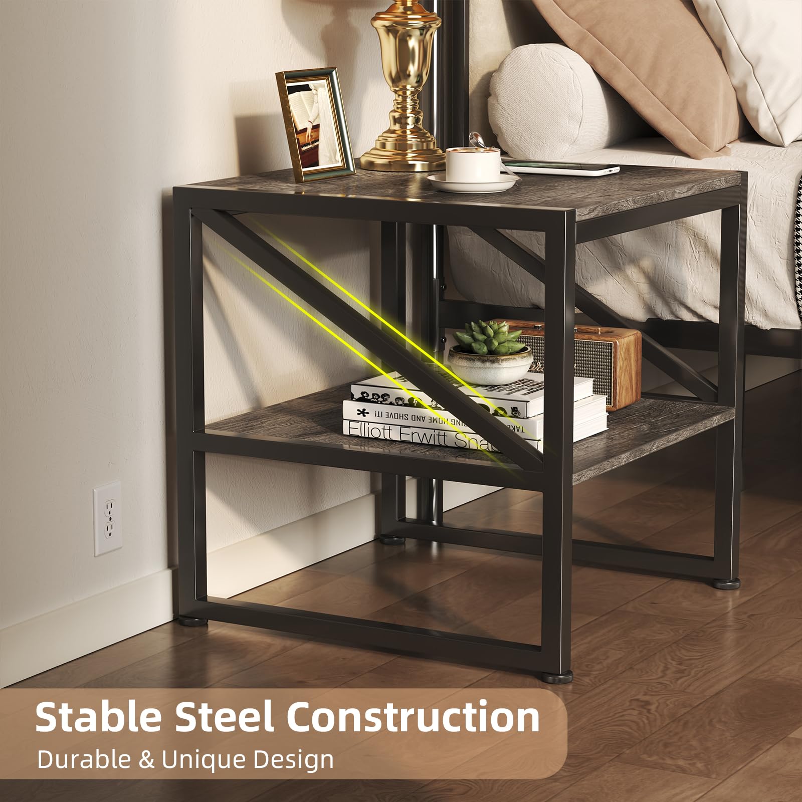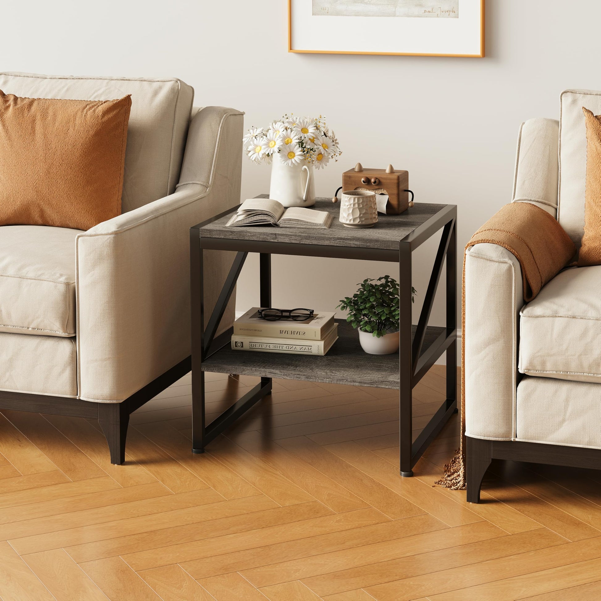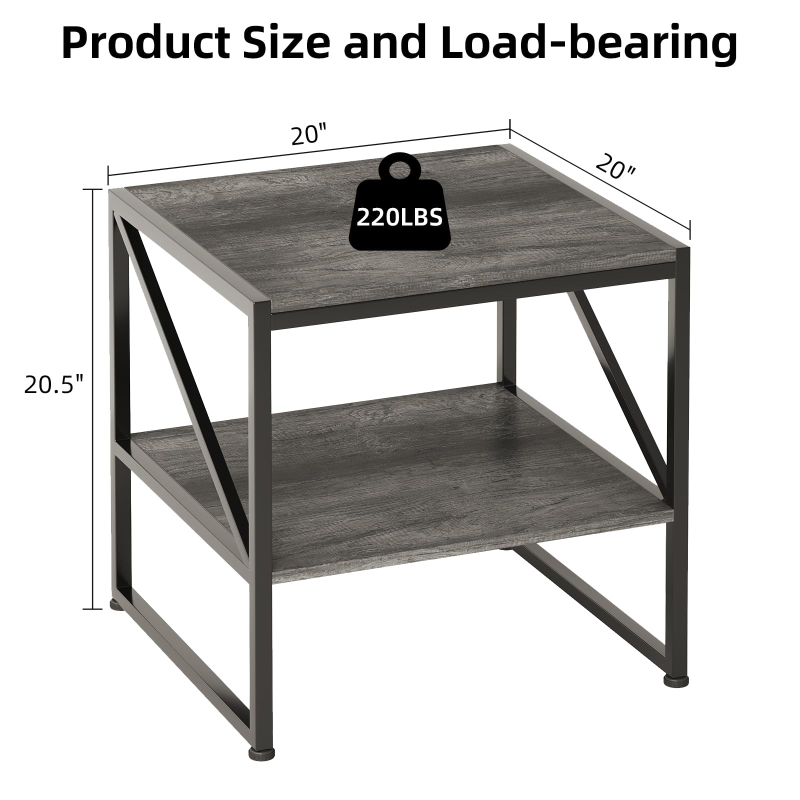 Mexin 20 Inch Square End Table, Mini Fridge Stand with 2-Tier Storage Shelf, High Load Capacity Side Table for Living Room Bedroom, Grey Oak