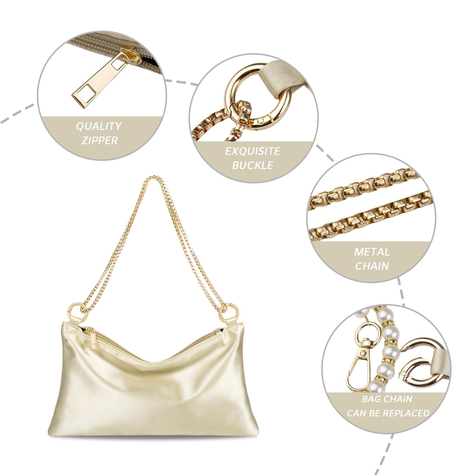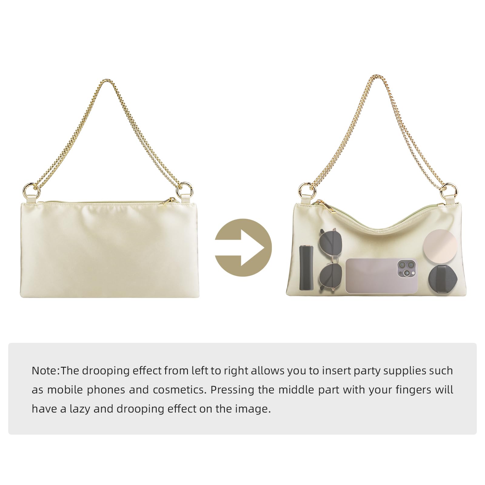 MGBPEI Women Satin Evening Handbag Wedding Prom Clutch Purse Formal Cocktail Party Clutches Shoulder Bag with 2 Bag Chains(Champagne)