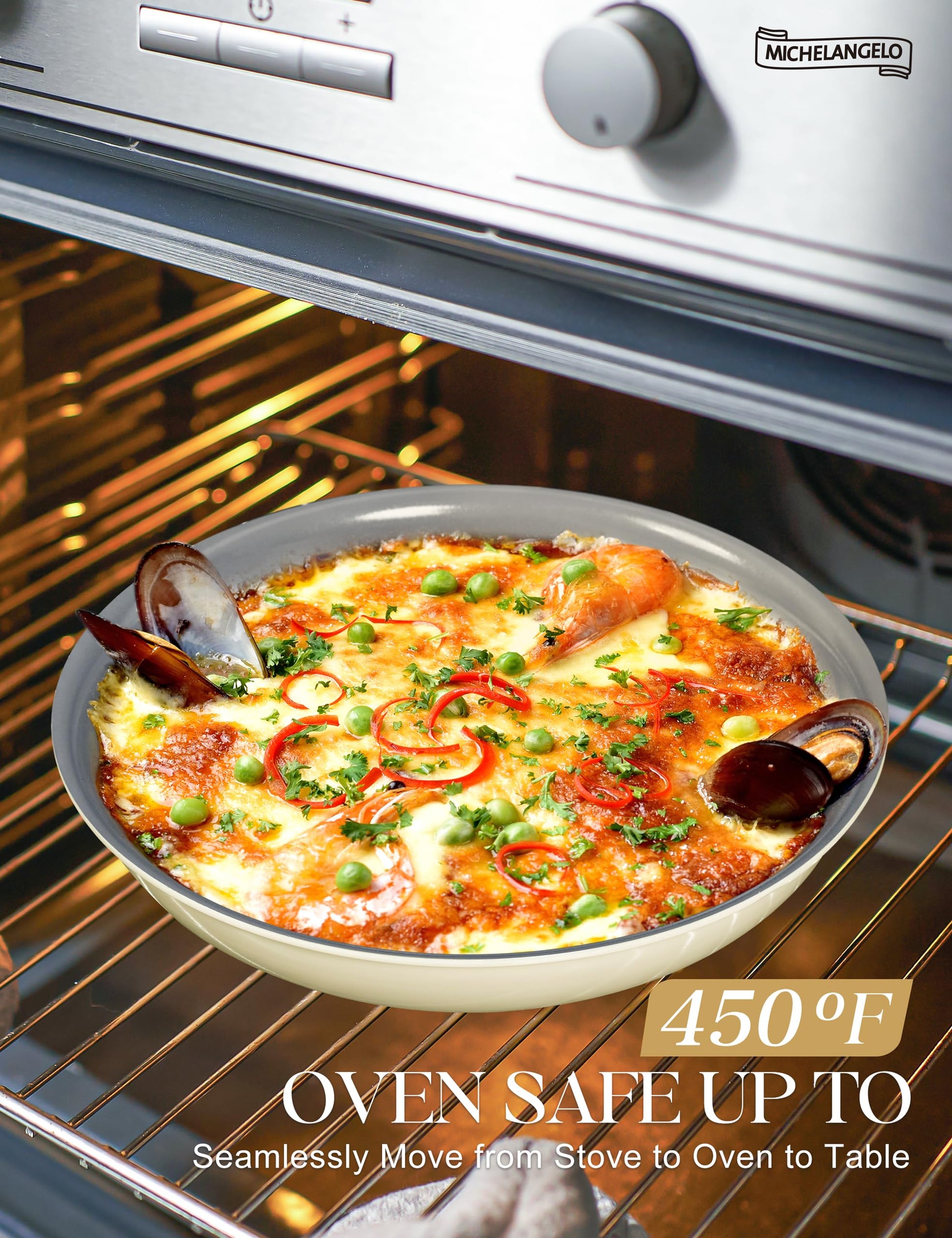 - DETACHABLE HANDLE CONVENIENCE - Pans with a removable handle that locks on in seconds—cook on the stovetop, move to the oven, and serve at the table. Easily switch between pans and use multiple at once without the handle in the way.