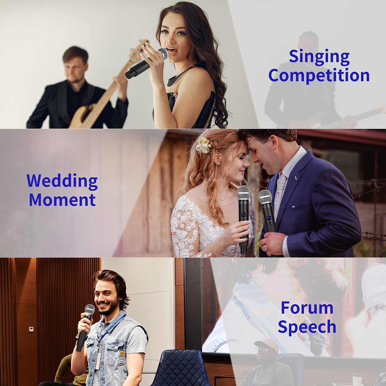 - WIDELY USED: MicrocKing wireless microphone system provides superb signal stability and eliminates unwanted distortion. Ideal for parties, home KTV, churches, weddings, DJ use, outdoor events, stage performances, etc.