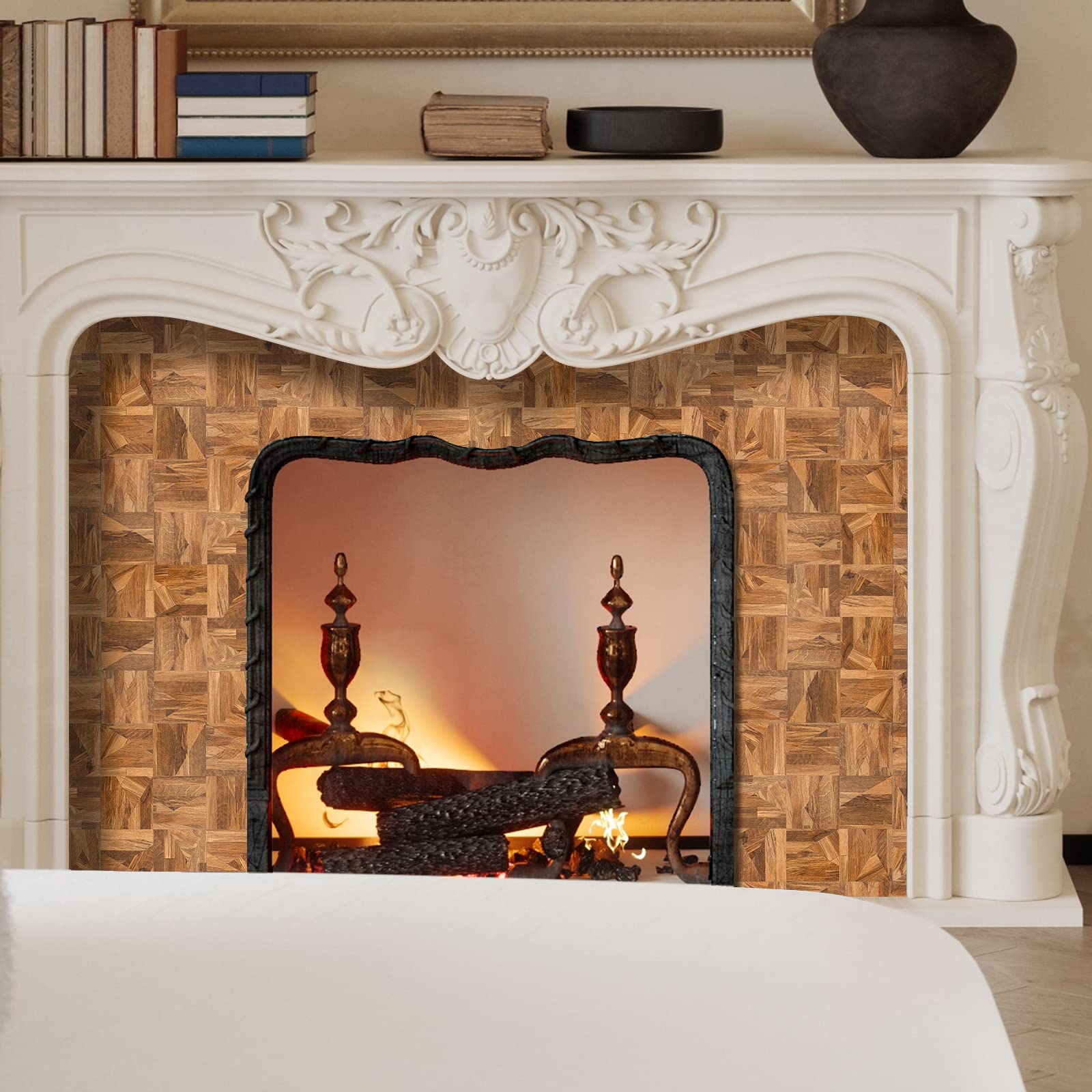 Midcard 10-Sheet Peel and Stick PVC Backsplash Tile, Natural Oak Triangle Puzzle