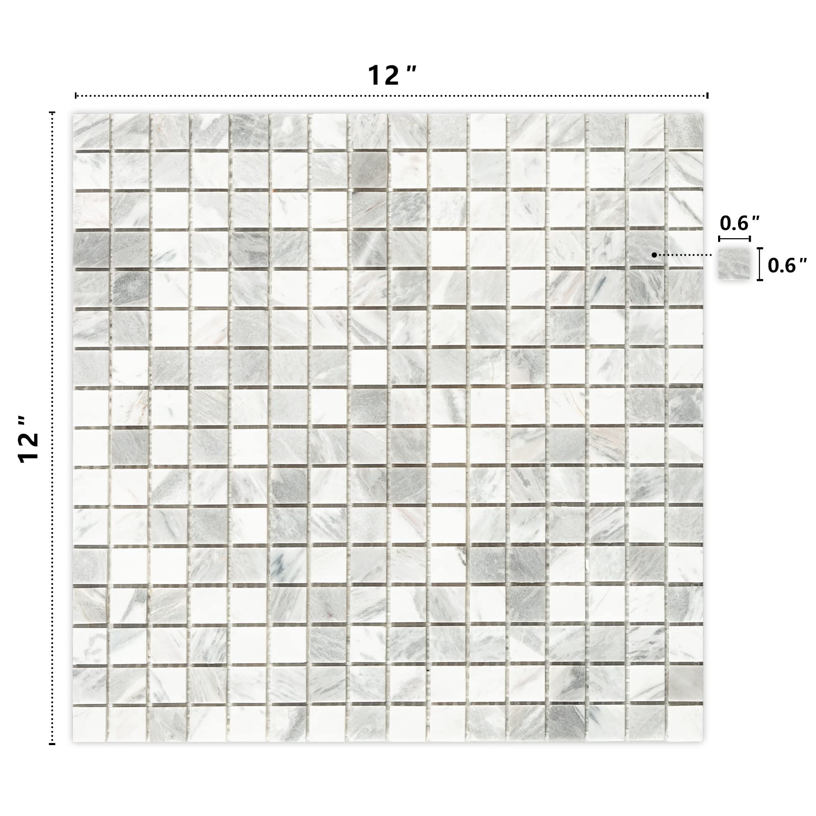 Midcard 6 Sheet Jazz White Gray Marble Square Mosaic backsplash Tile, Polished Shower Room Floor and Wall Tile