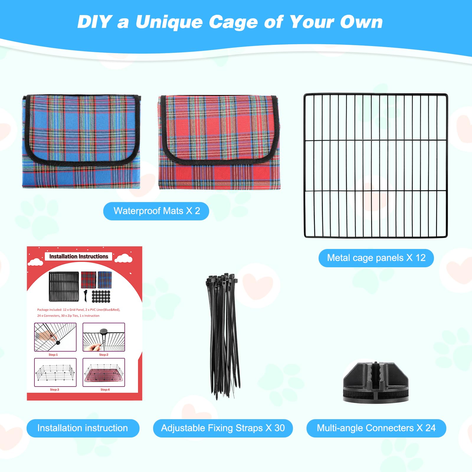 - Size: Each fence measures 12 x 12 inches, a total of 12 pieces, as well as connectors and cable ties for holding between fences, suitable for small animals such as guinea pigs, puppies, kittens and rabbits