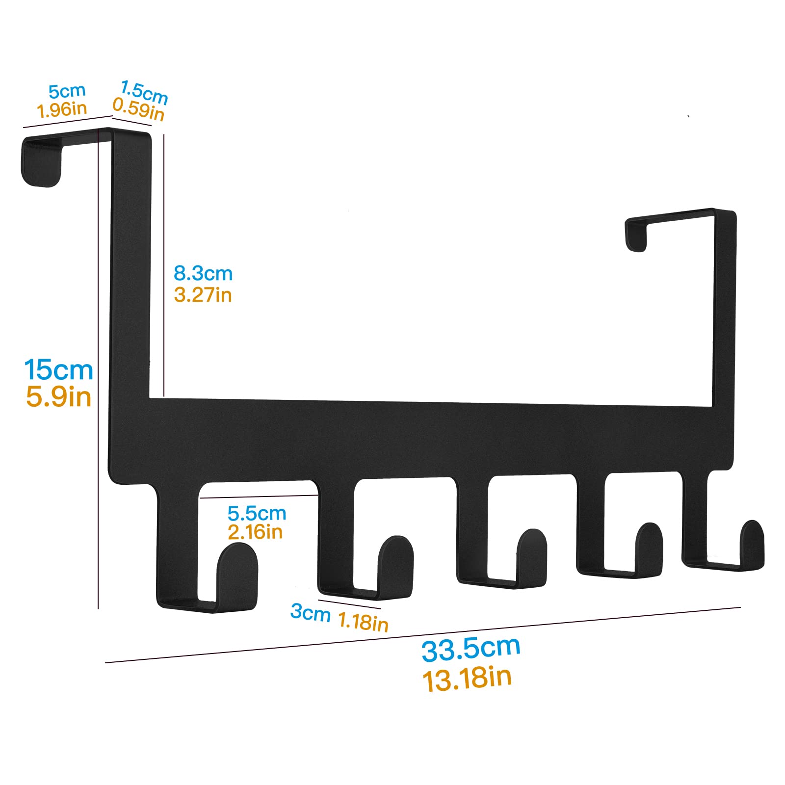 MINCORD Over Door Hook Hanger, Back of Door Bathroom Towel Rack Hooks Heavy-Duty Organizer Sturdy Anti-Rust Black 5-Hooks Towel Holder for Bathroom Bedroom Kitchen Coat Bag Robe Towels
