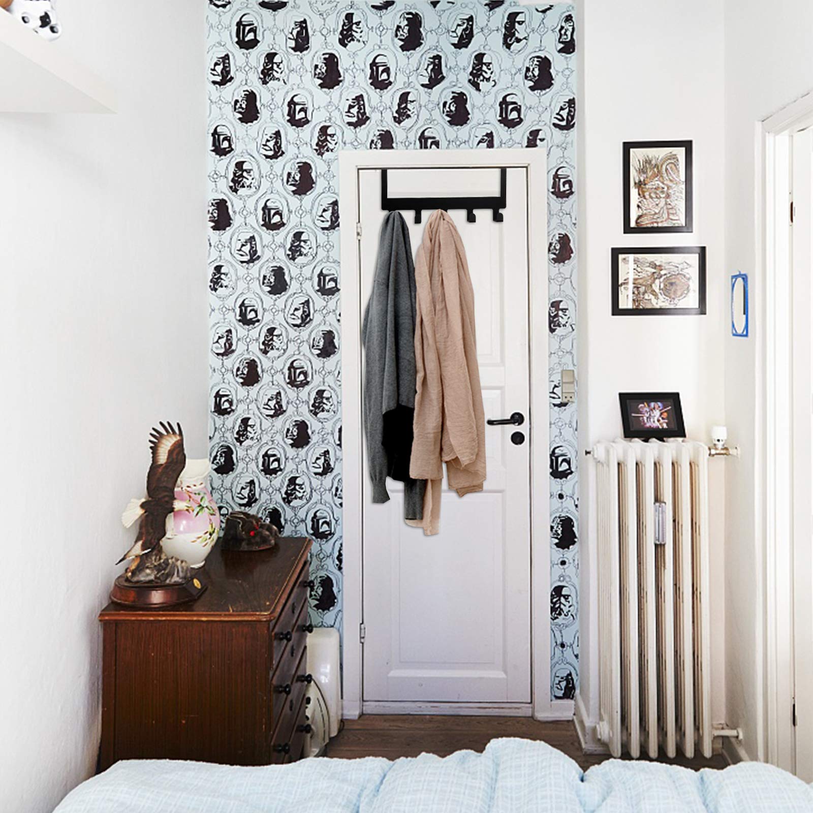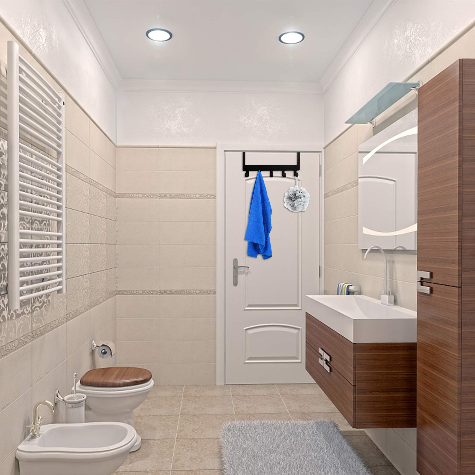 - 【Great Storage】The over door towel rack can expand space in your bedroom,bathroom,closet,laundry rooms,garage and anywhere else with limited space.5 Large hooks let you store things easily and keep your space organized and tidy.