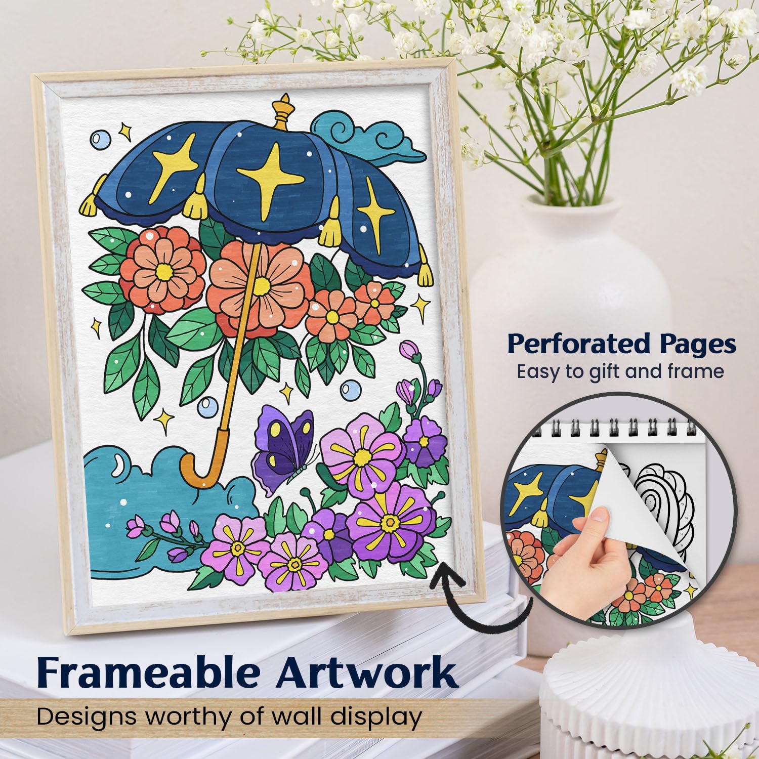 - Premium Coloring Experience: Enjoy our thick, bleed-resistant sketch paper (300gsm) that supports various mediums. Experiment with colored pencils, markers, or watercolors. Includes a bonus blotter page to protect your work.