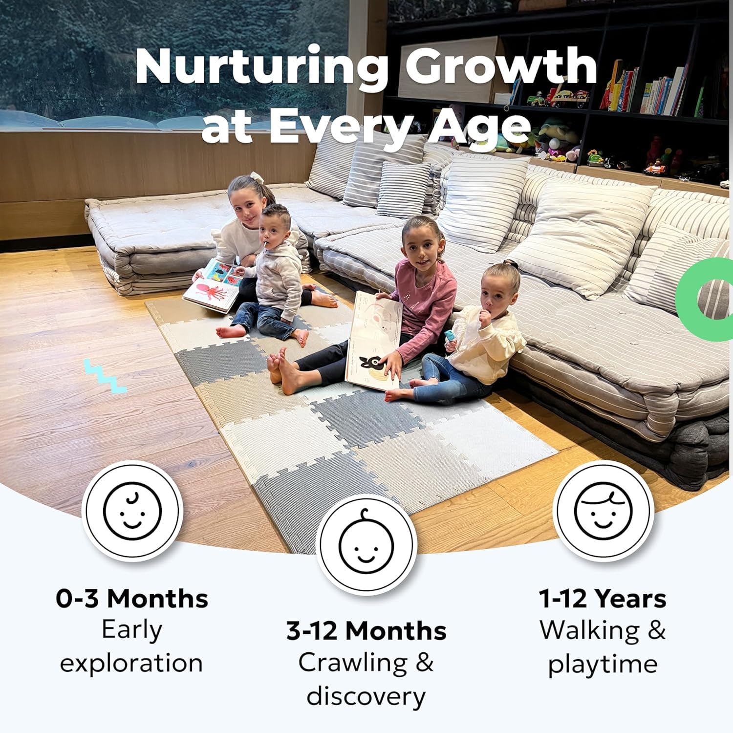 MioTetto Foam Floor Tiles for Kids - Non-Toxic Comfortable Baby Play Mat and Interlocking Foam Tiles, Fits with 50x50 Playpen Mat for Crawling & Development, Soft Play Mat for Babies 6-12 Months
