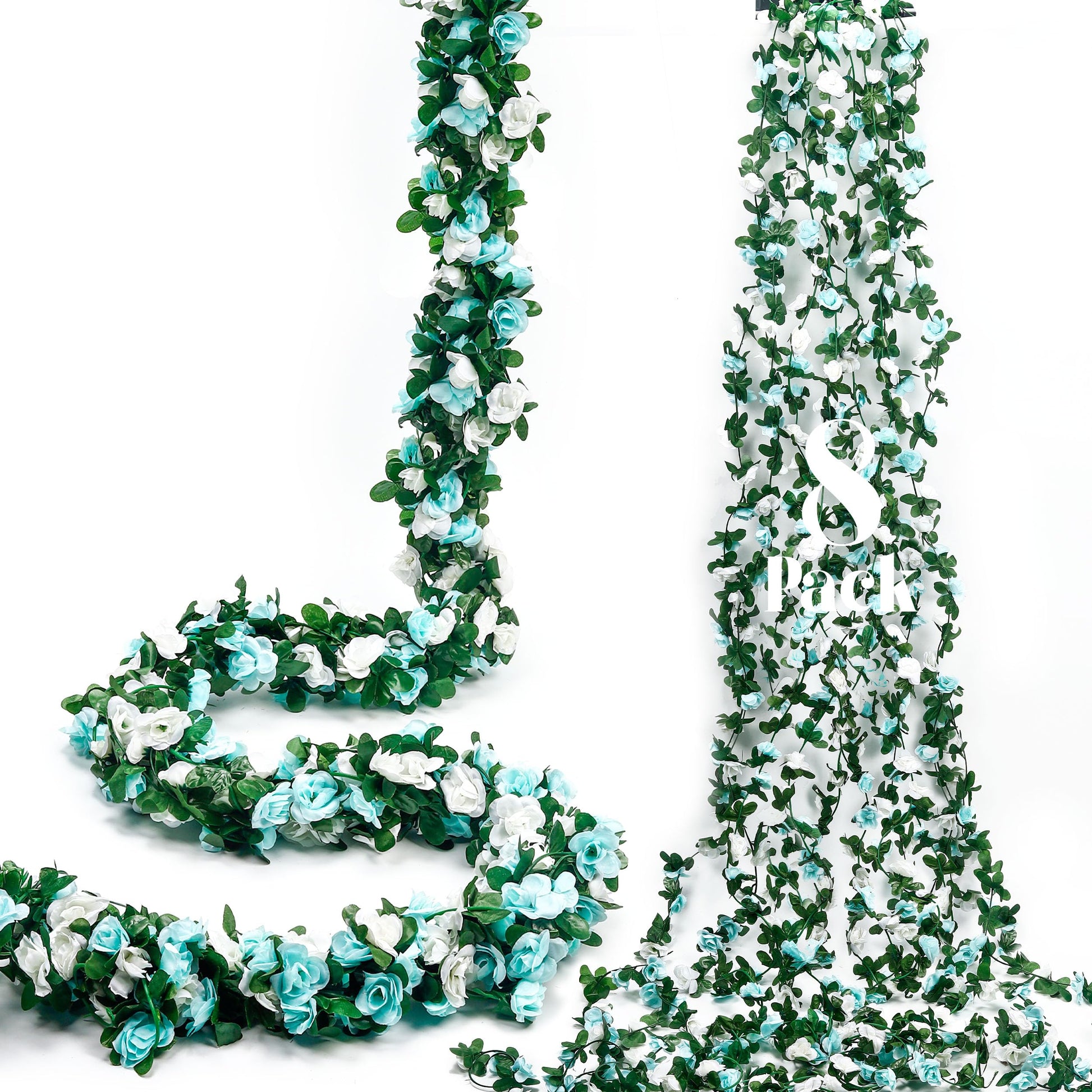 - Package Includes: 8pcs two-color rose vines in deep blue and light blue. When decorating, multiple vines are assembled together to achieve a flower wall backdrop effect(one vine alone is not full)