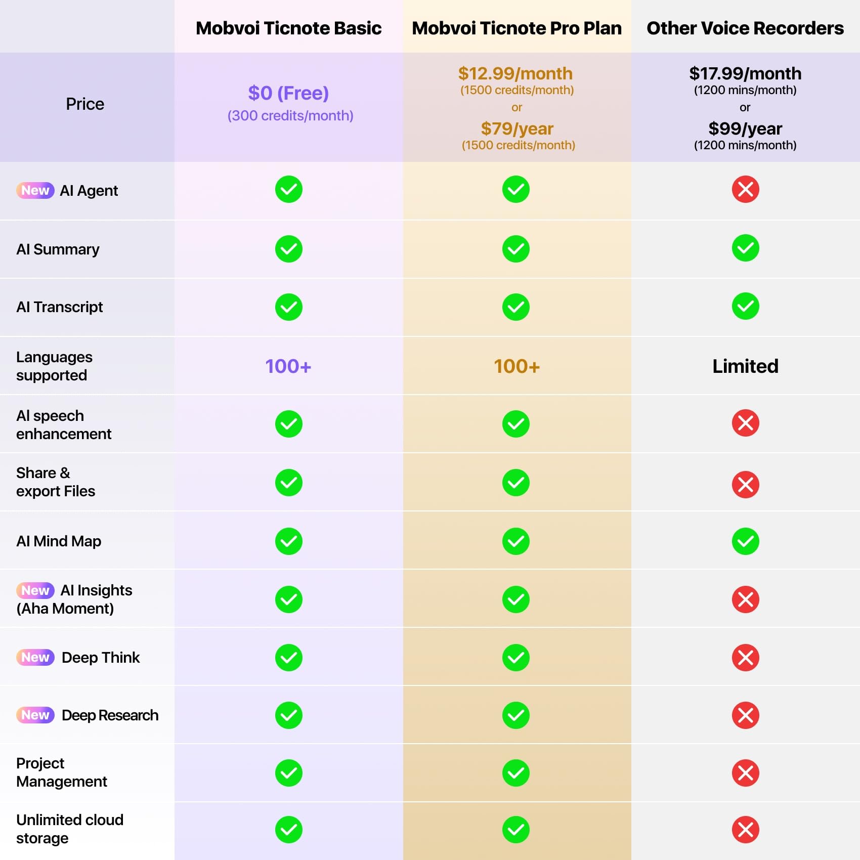 - 【Package Contains】1 Mobvoi TicNote, 1 Black Case, 1 Magnetic Ring, and 1 Magnetic Charging Cable. Plus: Purchases from Apr 15–Jul 15, 2025 include 3 free months of Pro (1500 credits/month).