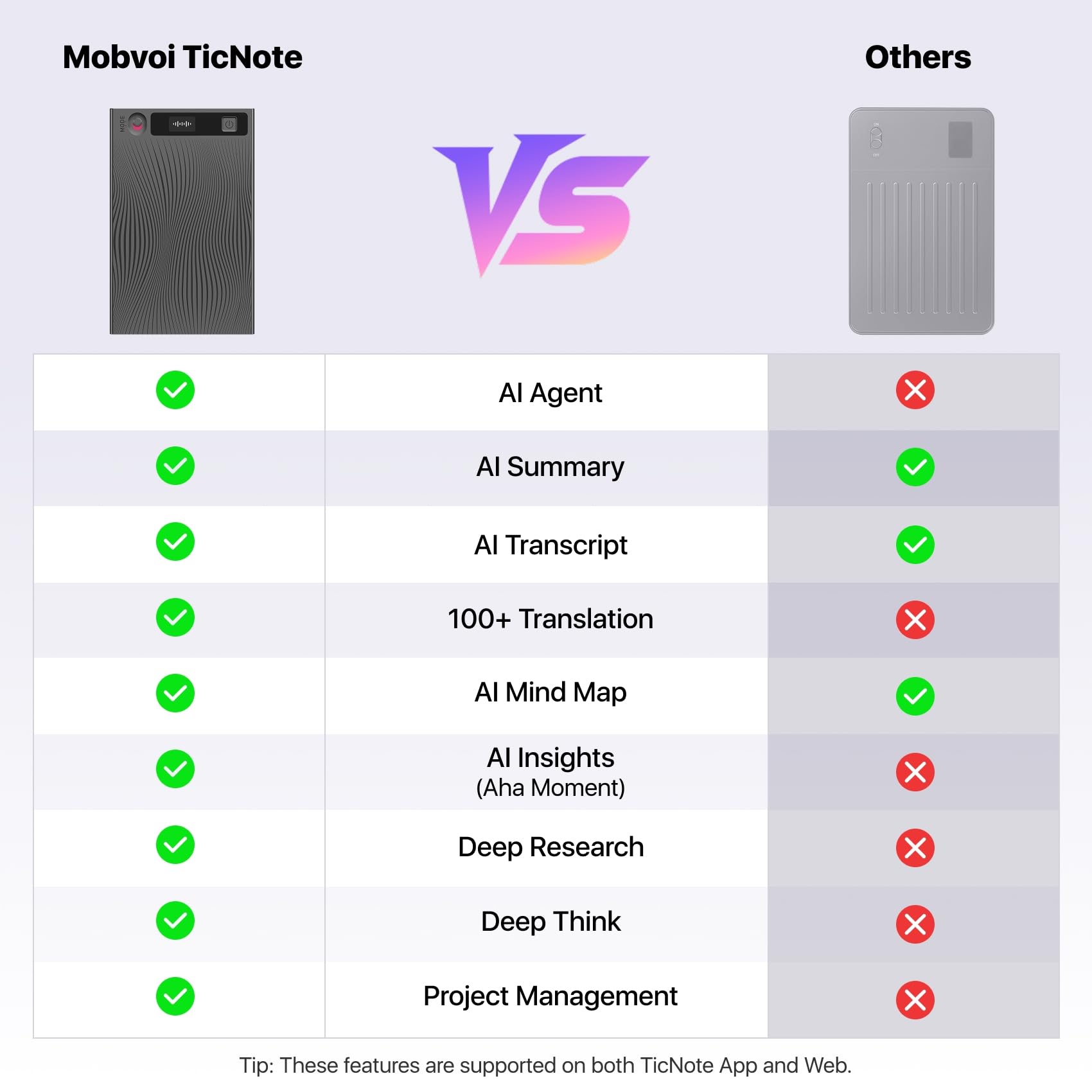 - 【AI Agent】Shadow is TicNote's built-in AI assistant that works seamlessly with hardware to help you think, organize. Chat with Shadow for quick answers or with Deep Think. Use online search for real-time insights. Capture Random Thoughts, whether as voice memos or written notes. For complex tasks, Deep Research helps you analyze your project’s files, past meetings all in one place. As you use TicNote, it learns from your workflow and proactively delivers Aha Moments-smart insights and creative solutions to help you solve real-world challenges.