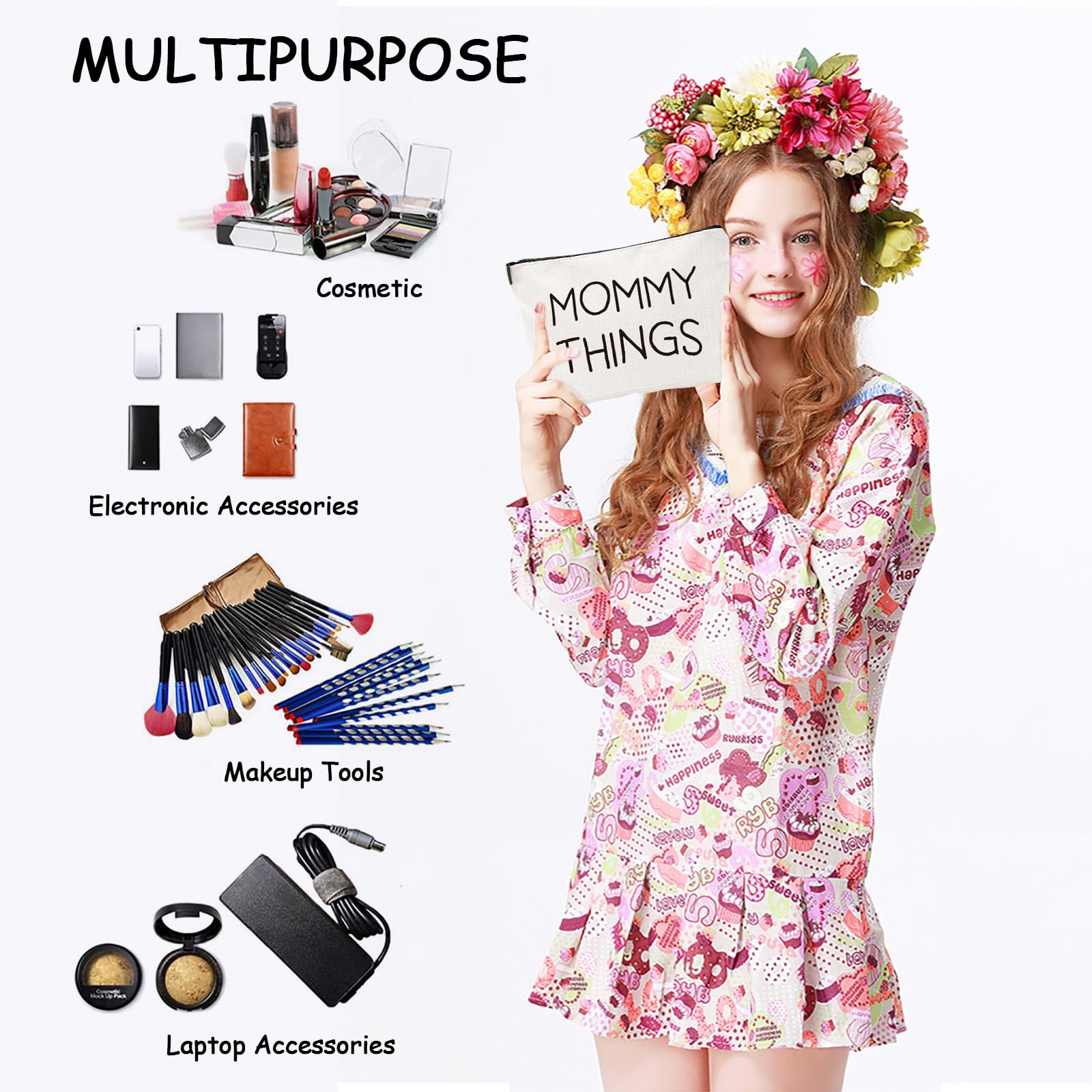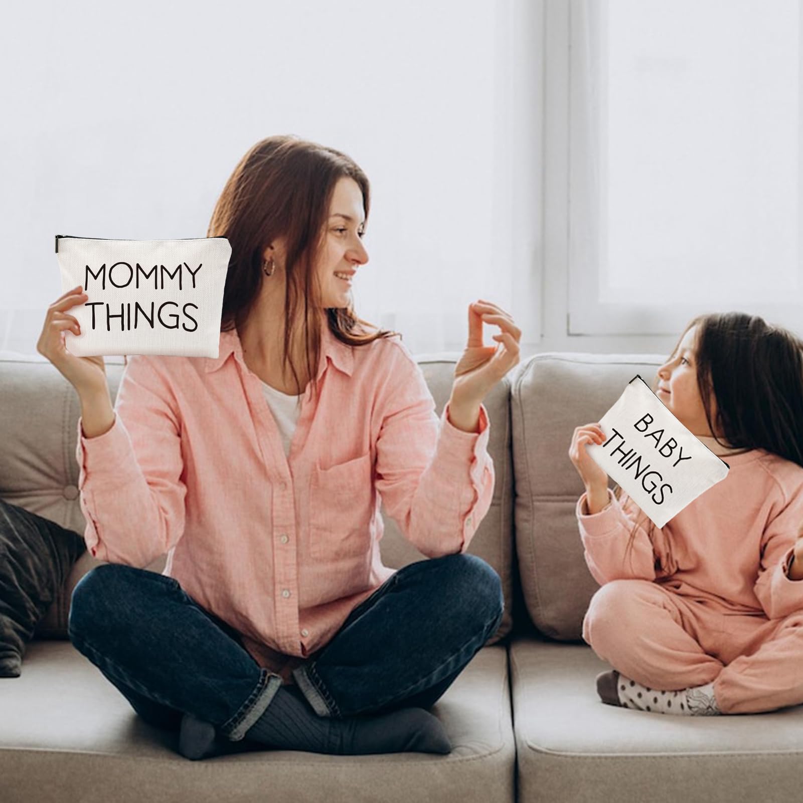 - STYLISH AND UNIQUE DESIGN: Turn heads with the Mommy and Baby Bag’s sophisticated and unique design. Featuring a fade-resistant thermal transfer print of 'MAMA THINGS' and 'BABY THINGS,' this bag is both functional and fashionable. The smooth metal zipper adds a touch of elegance, making it a chic accessory that enhances any outfit.
