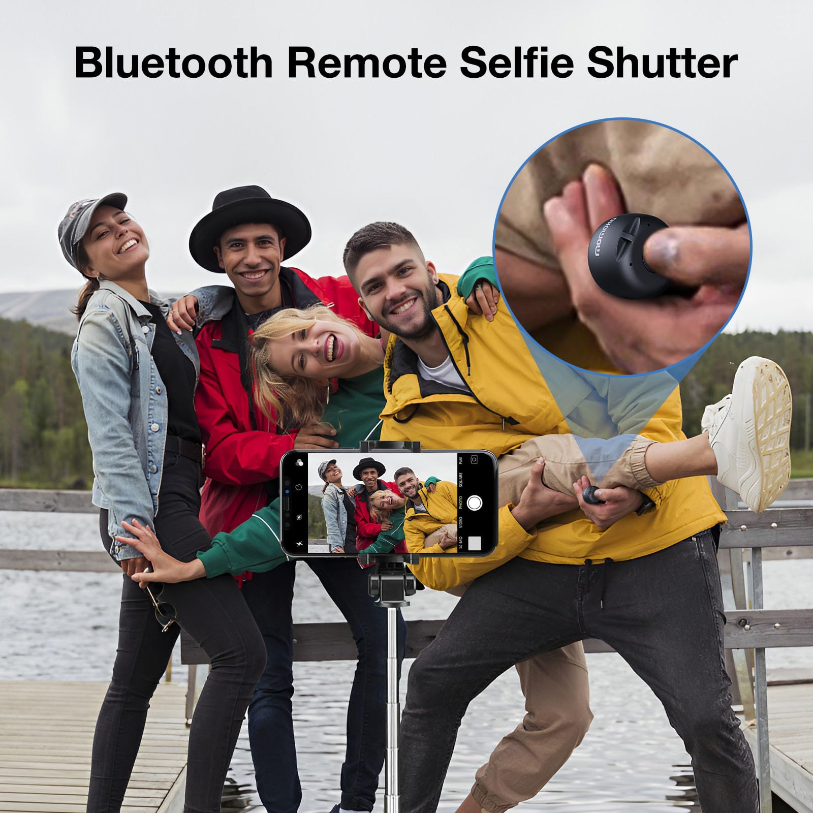 - Bluetooth Remote Shutter: The cute and tiny bluetooth speaker can also be used as a selfie remote control of your phone. Achieve the perfect selfie. This camera bluetooth remote control supports most Bluetooth-enabled mobile phones. Operating range is approximately 50 feet