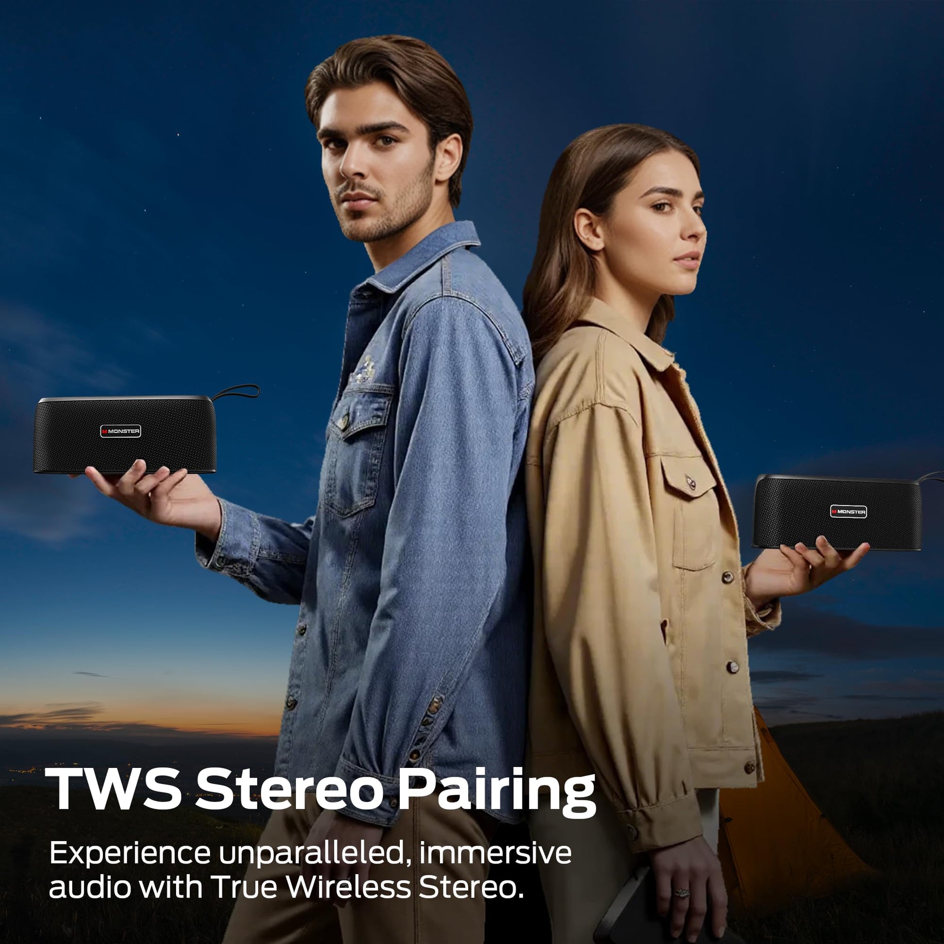 Monster Shock Portable Bluetooth Speaker, True Wireless Speaker, 30W Loud Stereo Sound, IPX6 Waterproof,17 Hours Playback, Bluetooth 5.4 TWS Pairing ,Outdoor Speakers with Handle
