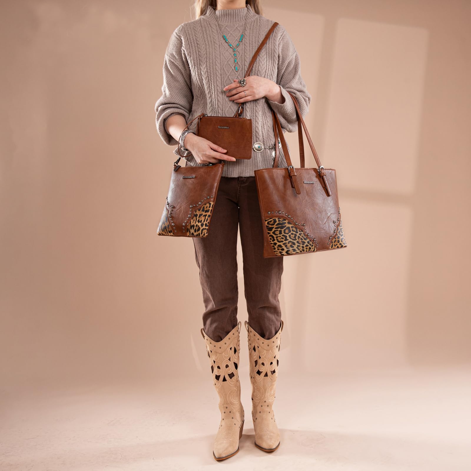 Montana West Purses and Handbags for Women 3pcs Hand Bags Tote Purse and Wallet Set Shoulder Satchel Bag for Women Leopard Print gifts MWC3-G058BR