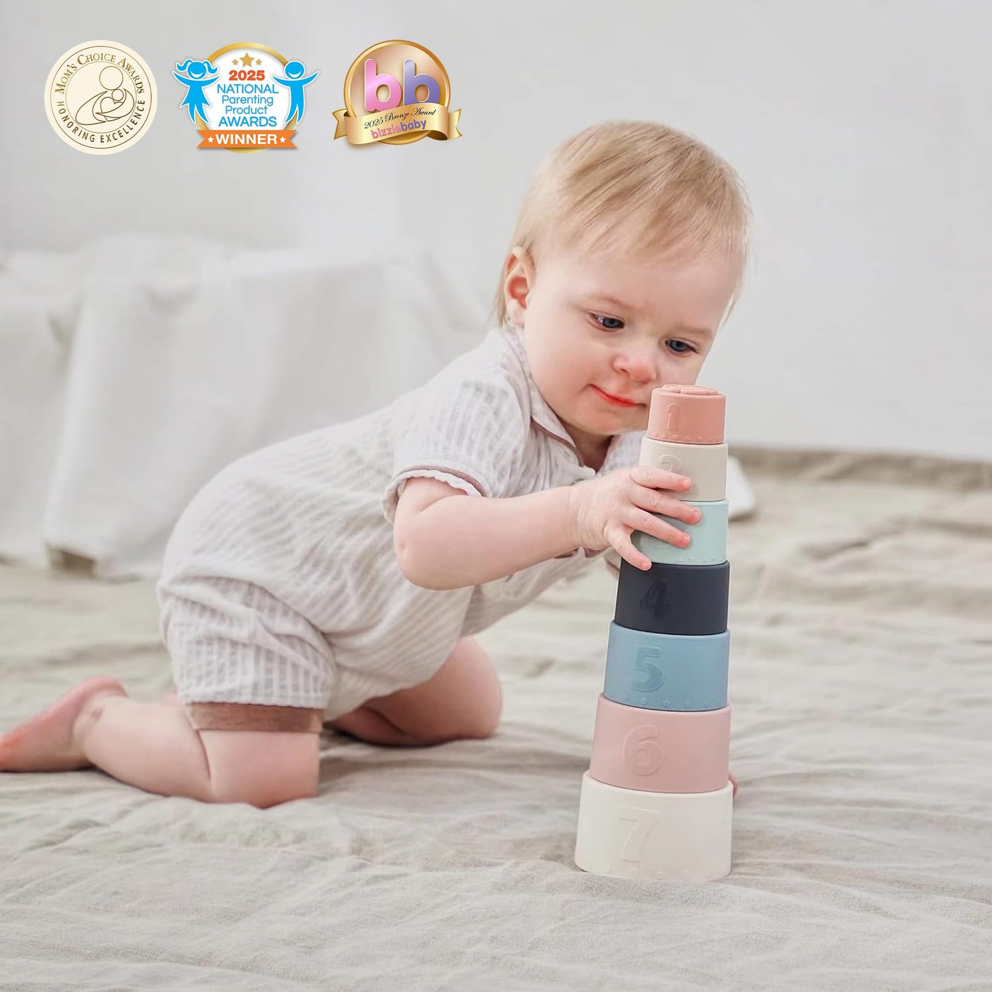 Moonkie Stacking Cups Toy, Fun Educational Baby Toys Silicone Soft Teething Toy, Age 6+ Months, 7 Piece Set
