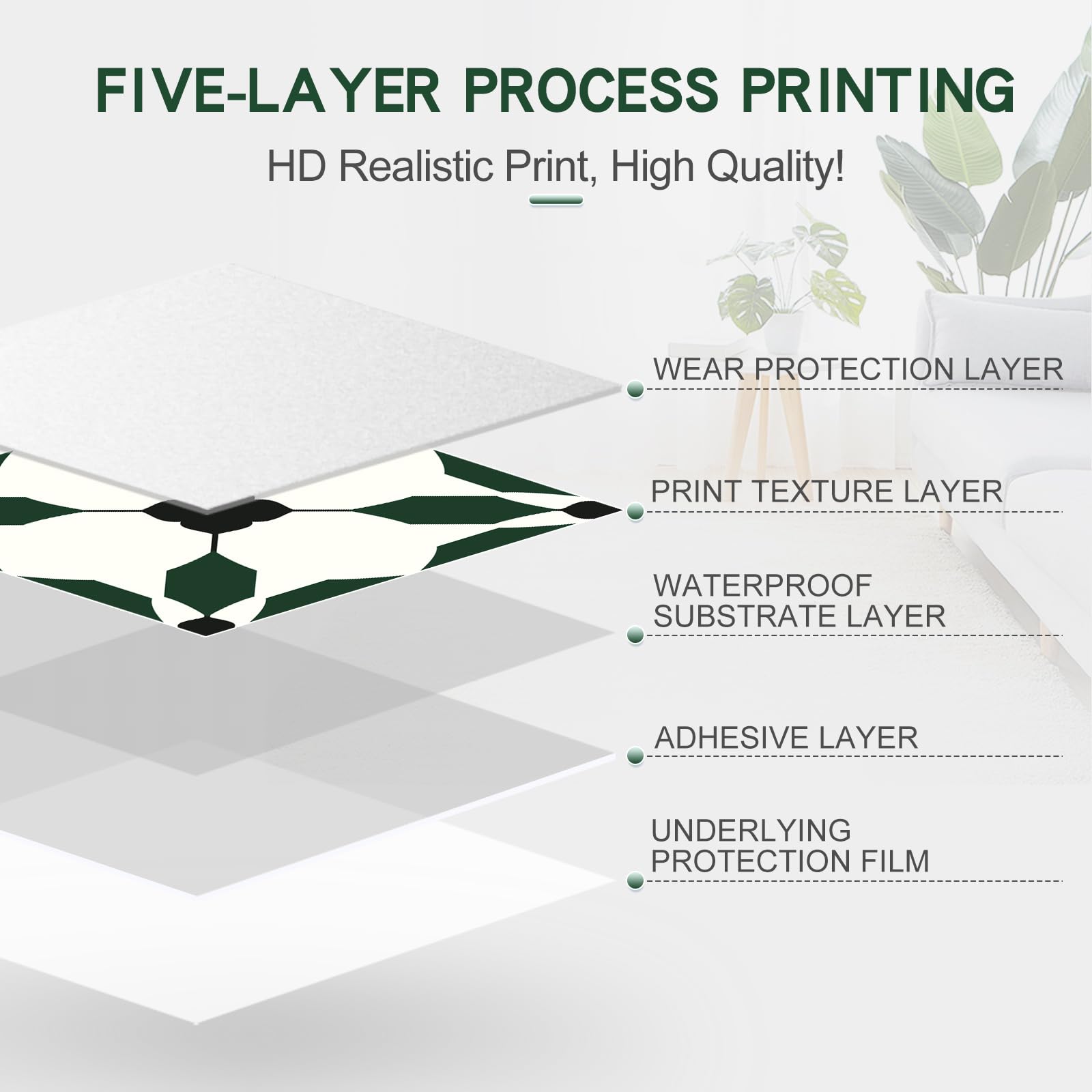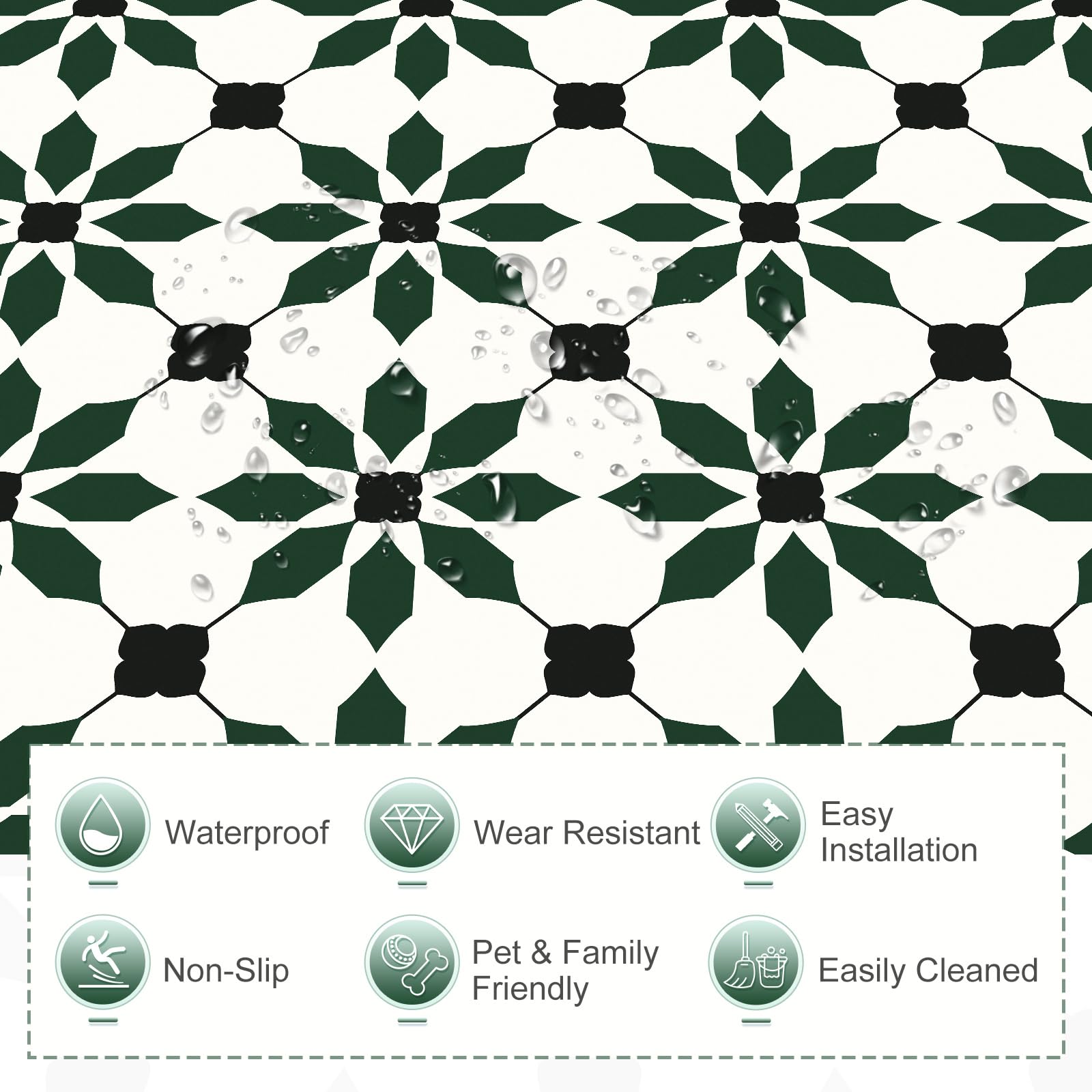 MORCART 7.87" x 7.87" Peel and Stick Floor Tile, 20 PCS Self-Adhesive DIY Vinyl Flooring for Renters, Removable and Waterproof Tile Sticker for Bathroom, Kitchen, Staircase (Black Green)