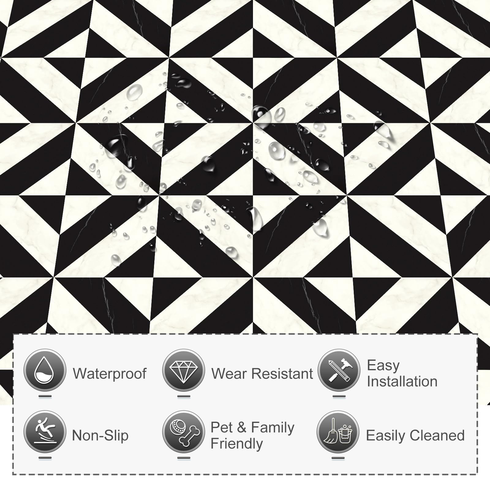 - Superior Property: Peel and stick floor tiles, crafted from wear-resistant material, are waterproof, moisture-proof, and easy to clean, leaving no sticky residue and protecting your flooring