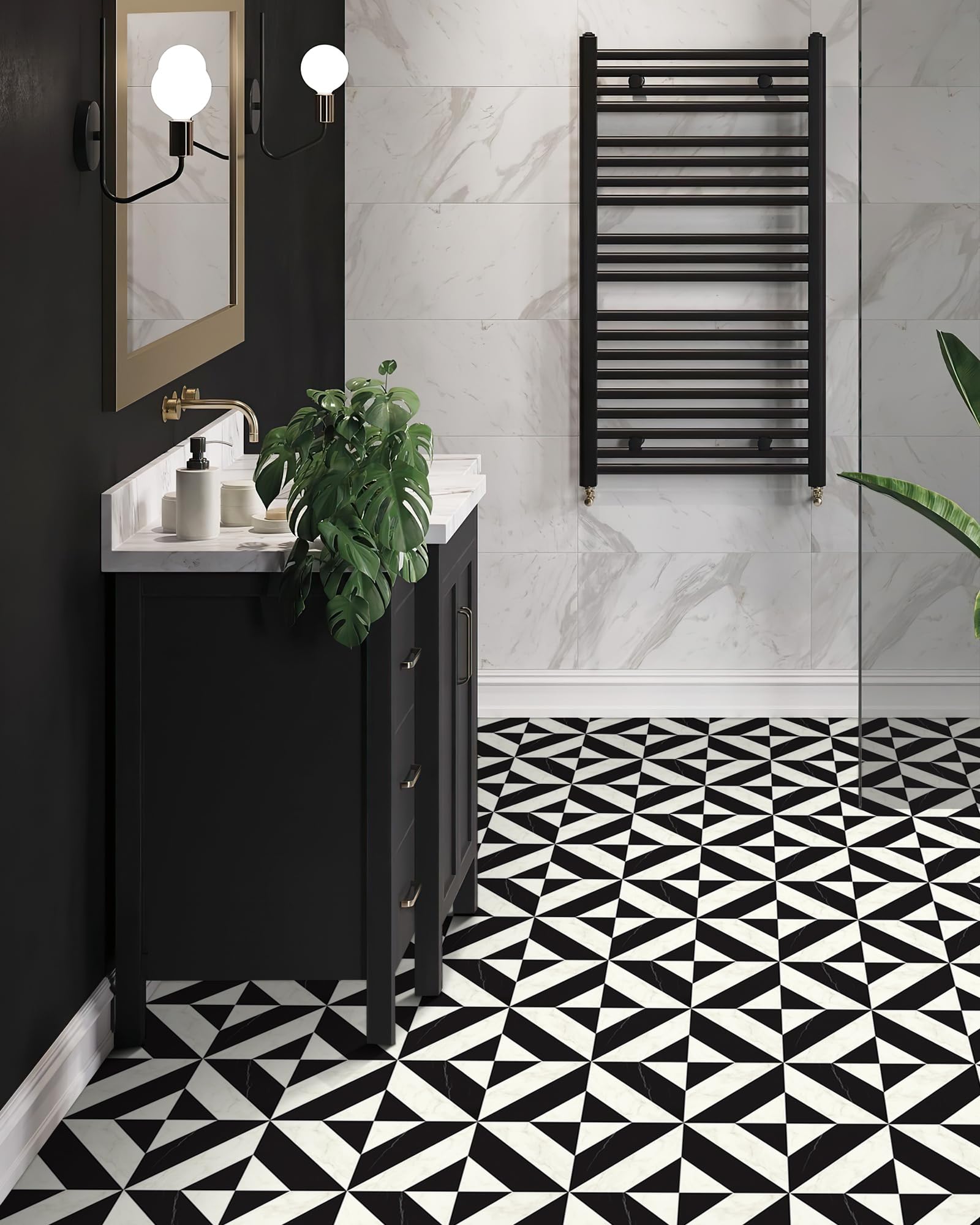 MORCART Peel and Stick Floor Tile - 20 PCS, 11.8" x 11.8" Vinyl Flooring - Waterproof Self-Adhesive Tile Sticker for Bathroom, Kitchen, Dining Room, Bedrooms - Cover 19.4 Sq. Ft, Black & White Marble