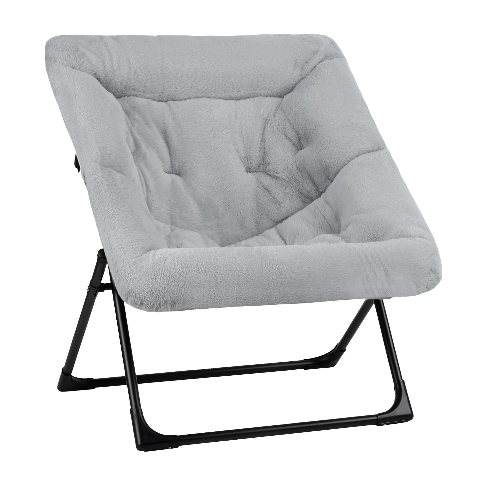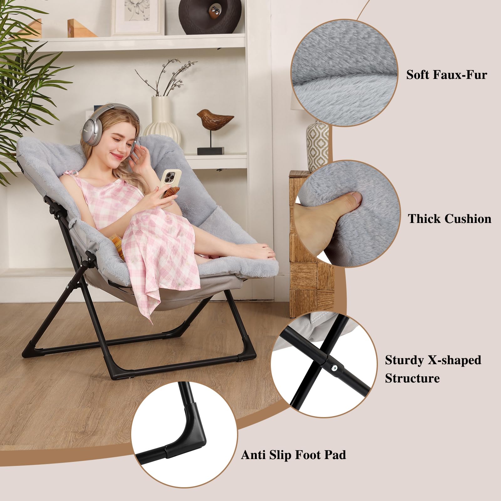 Mordchil HF Folding Saucer Chair, Comfy Faux-Fur Reading Chair, Foldable Accent Chair for Teens, Adults, Oversized Lazy Chair, Large Lounge Chair for Living Room, Bedroom, Dorm, Grey