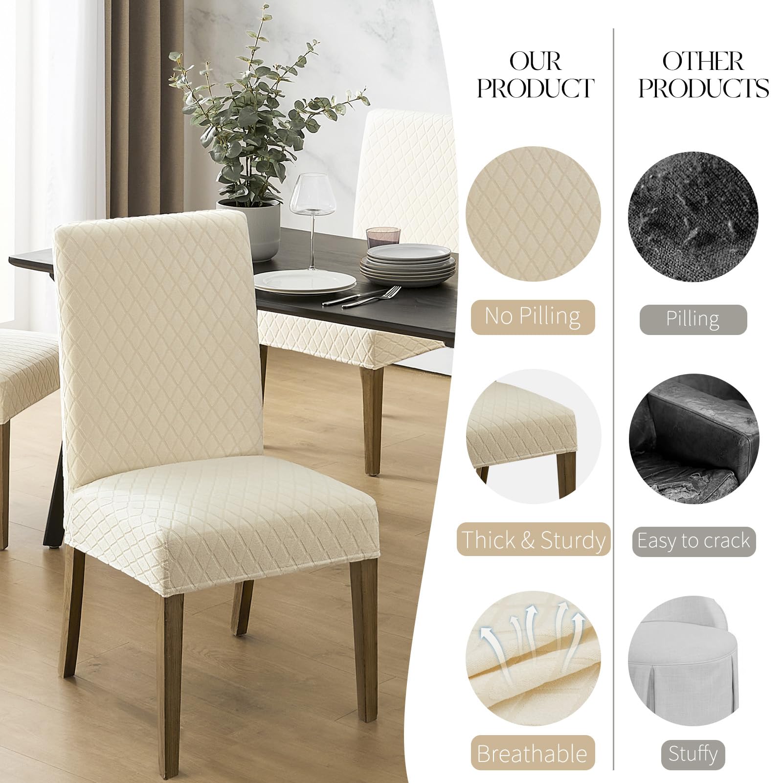 MOSAYT 100% Waterproof Dining Room Chair Covers Set of 4, Super Fit Stretch Jacquard Parson Chairs Slipcovers Removable Washable Chair Seat Protectors for Home, Kitchen, Banquet (Beige)
