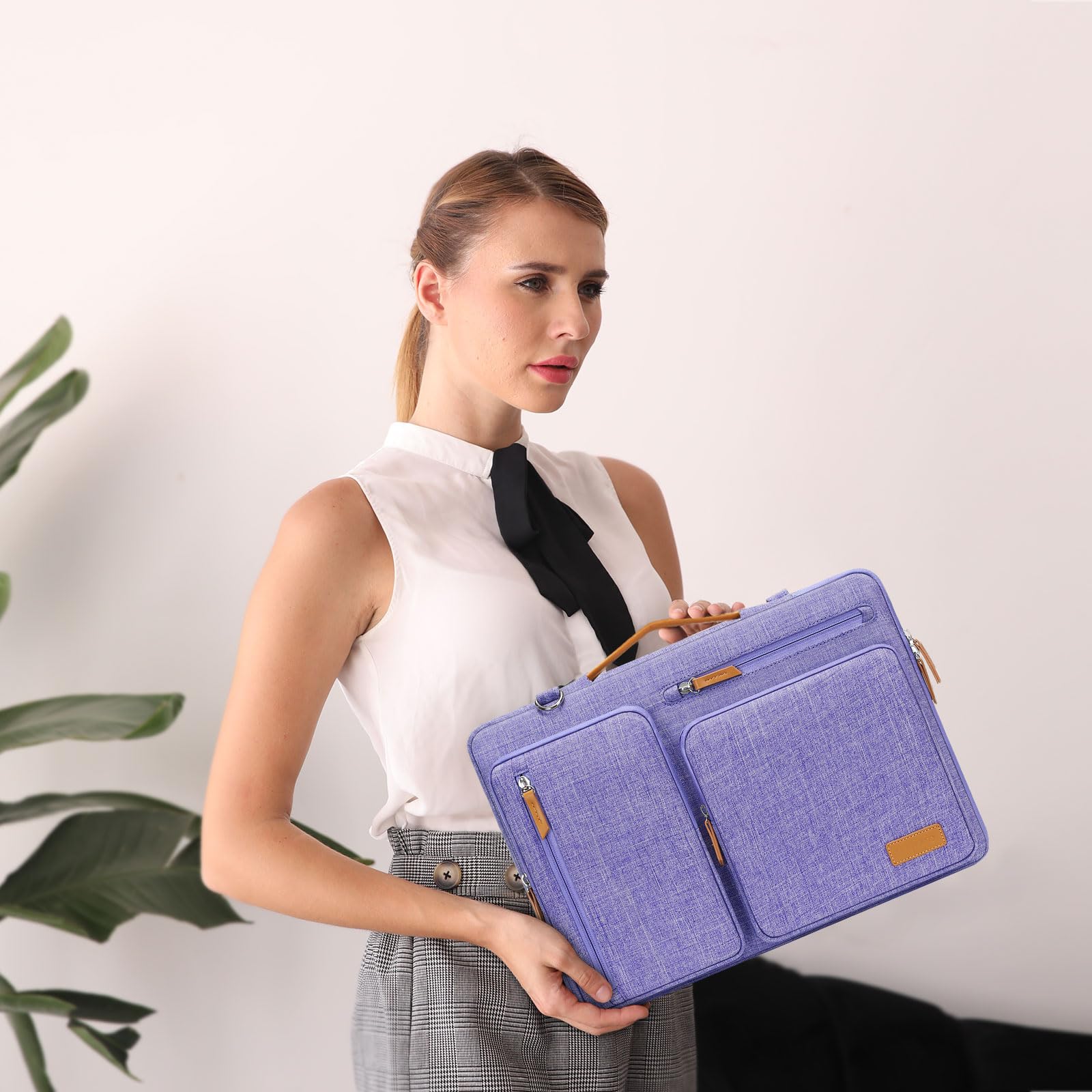 MOSISO 360 Protective Laptop Shoulder Bag,15-15.6 inch Computer Bags Compatible with MacBook Pro 16 inch, HP, Dell, Lenovo, Asus Notebook,Side Open Messenger Bag with 4 Zipper Pockets, Purple