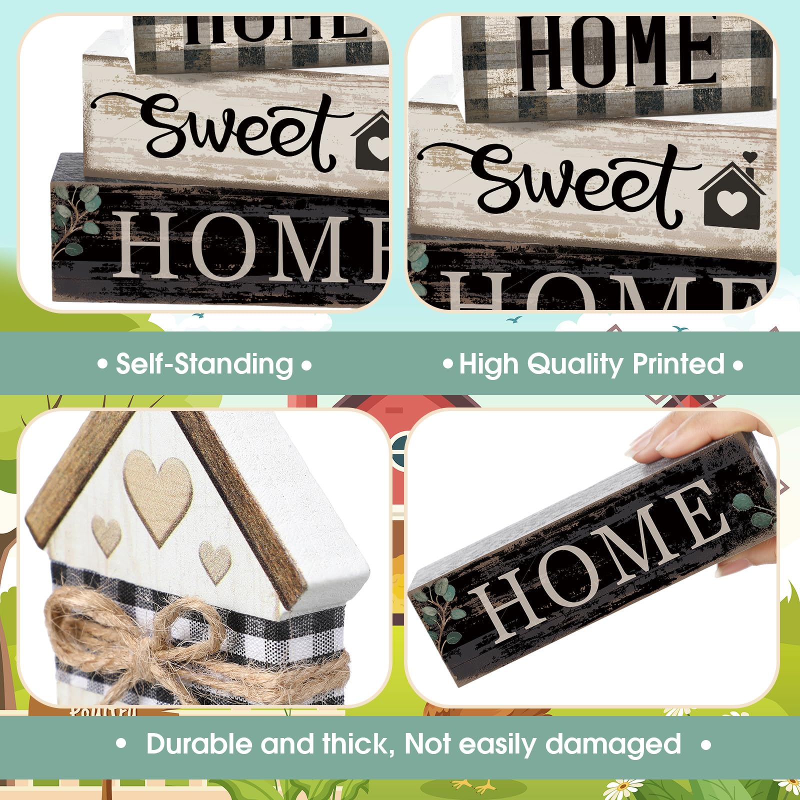 Moucuny 4 Pcs Farmhouse Wooden Tabletop Decor Sweet Home Tiered Tray Decor Rustic Retro Wood House Shaped Block Sign Housewarming Gifts Neutral Centerpiece Farmhouse Table Sign for Home Shelf Mantle