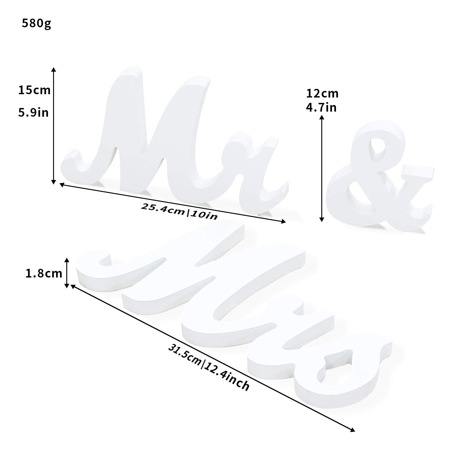 - LARGE SIZE --- 'Mr' measures 10' x 5.9' x 3/4', 'Mrs' measures 12.2' x 5.9' x 3/4' , '&' measures 4.3' x 4.7' x 3/4' . There is a 0.5-1 inch error, please understand.Mr and mrs sign is Perfect for most of standard tables!