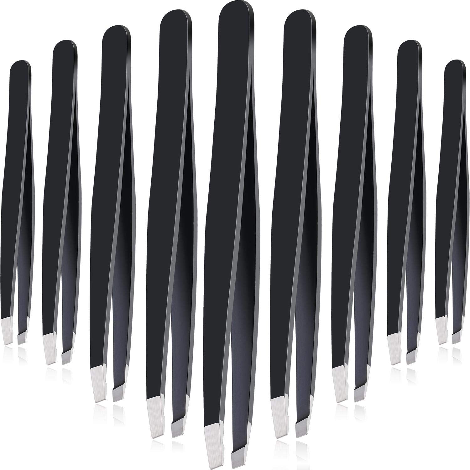Mudder 12 Pcs Eyebrow Tweezers Set for Facial Hair Stainless Steel Slant Tip Tweezers in Bulk for Men and Women(Black)