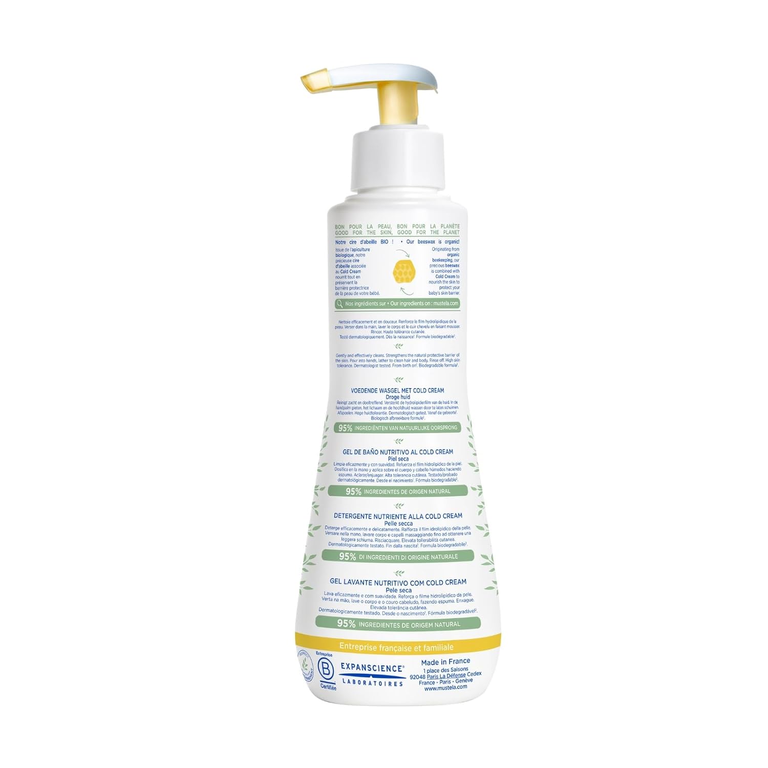 Mustela Baby Nourishing Cleansing Gel – Hair & Body Wash for Dry Skin - with Natural Avocado, Cold Cream & Beeswax - 10.14 fl. oz.