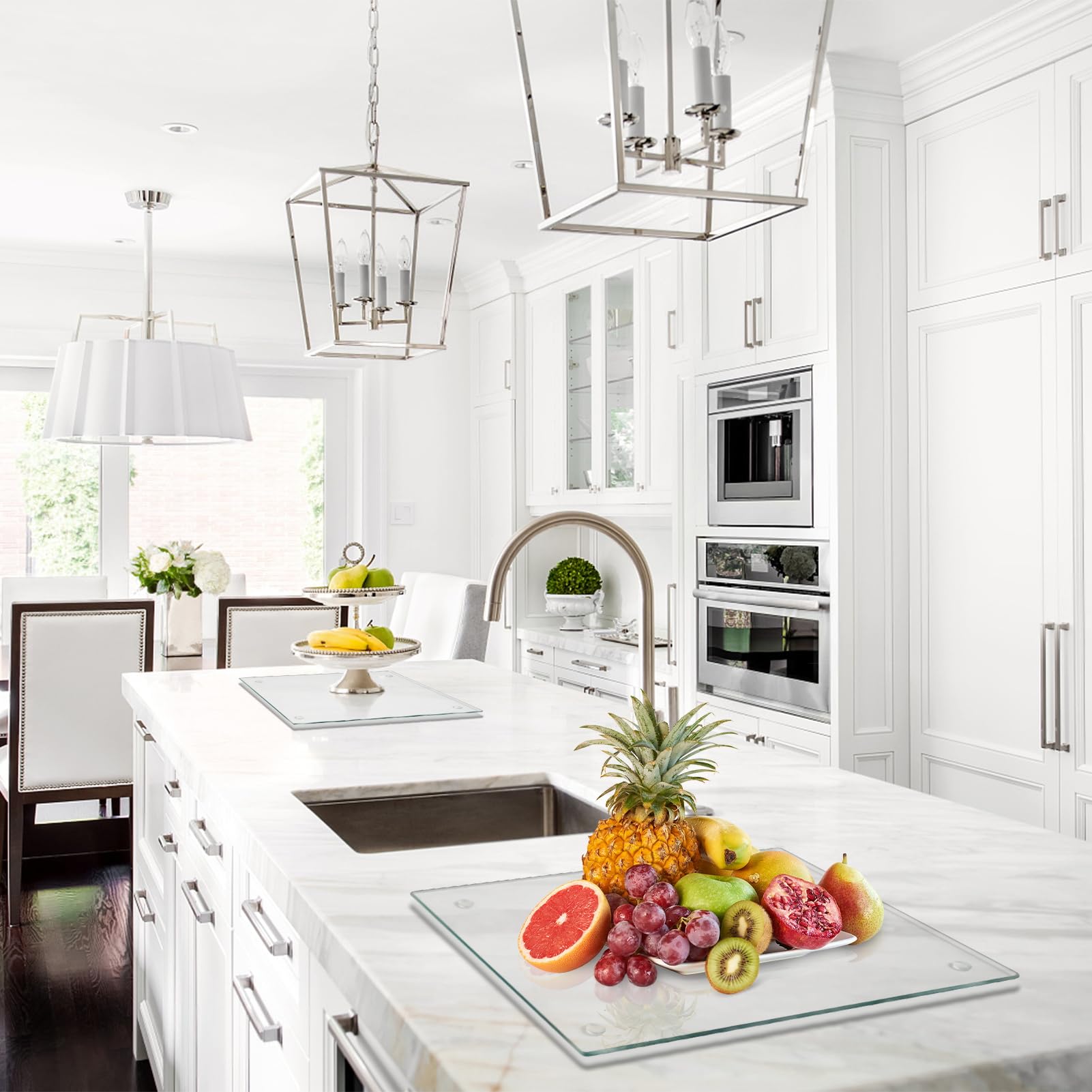 - ANTI-SLIP: There are four non-slip feet on the bottom of the glass cutting board to ensure that the board won't scratch your countertop, and it also makes the board very stable and won't slide.