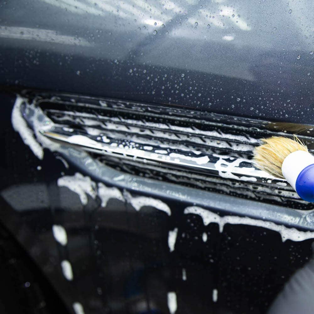 • ⏹ DESIGN --- Our premium brushes contain no metal parts to ensure the safest cleaning experience and to avoid marring delicate paint or interior finishes and intricate wheel designs. One hole design on each brush let you put a string or something on the handle where the hole is to help you hang onto these longer.