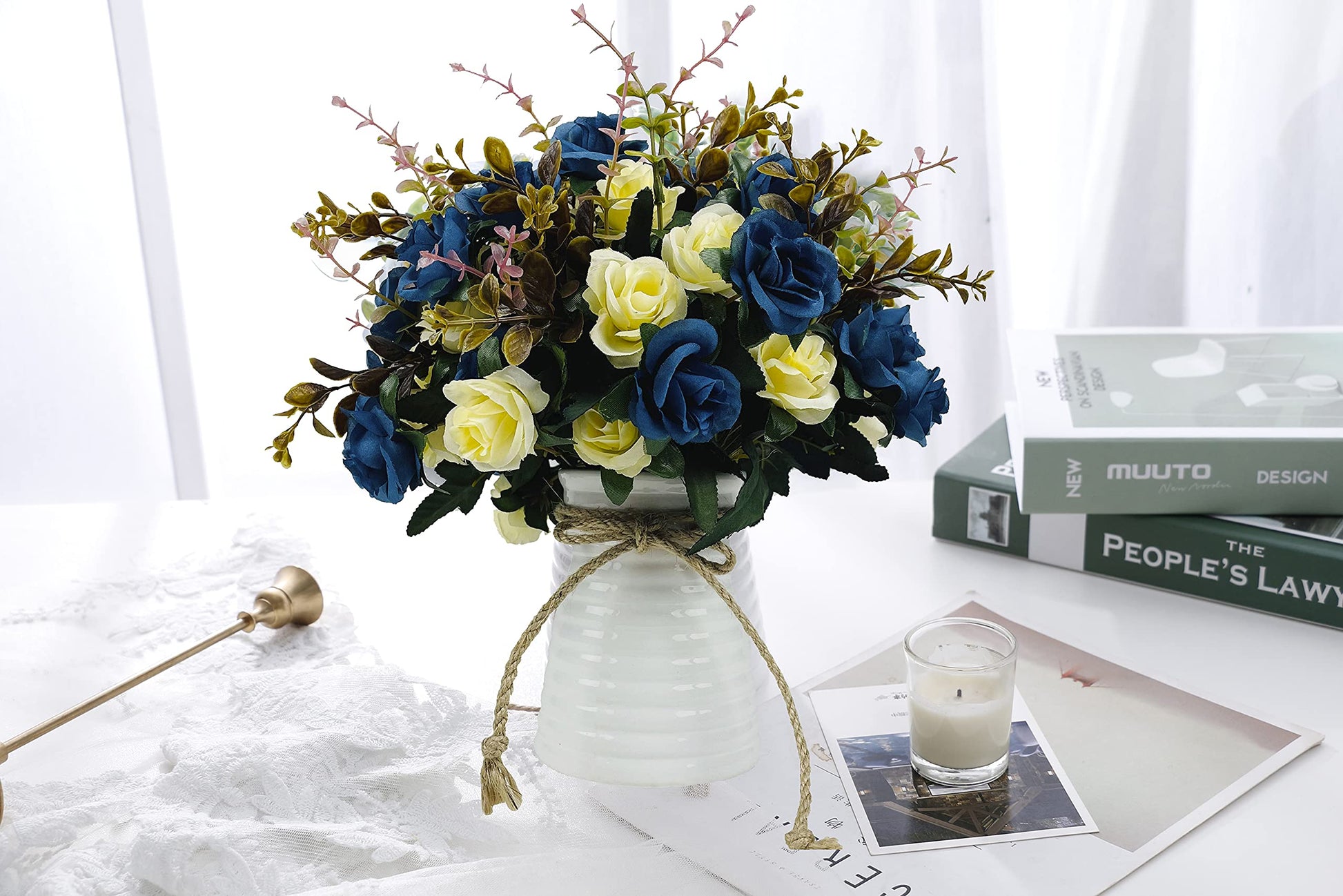 NAWEIDA Artificial Flowers with Vase Faux Flower Arrangements for Table Decor Table Centerpieces for Dining Room-Navy Blue